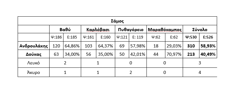 Άνετη επικράτηση Ανδρουλάκη στη Σαμο και στον β’ γύρο με 58,93%