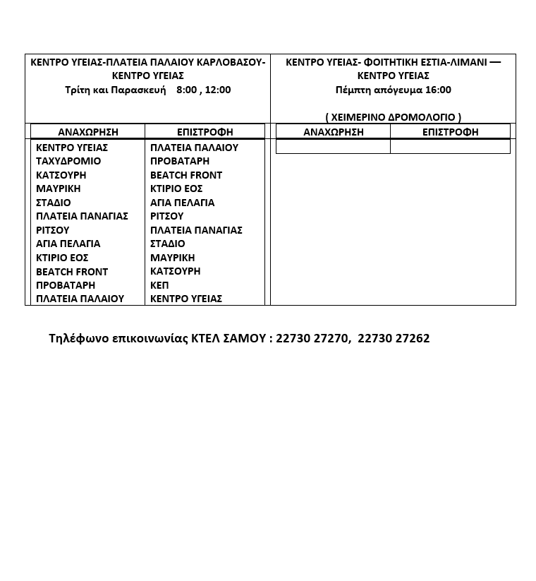 Ανακοινώθηκαν οι στάσεις της Αστικής Συγκοινωνίας στο Καρλόβασι