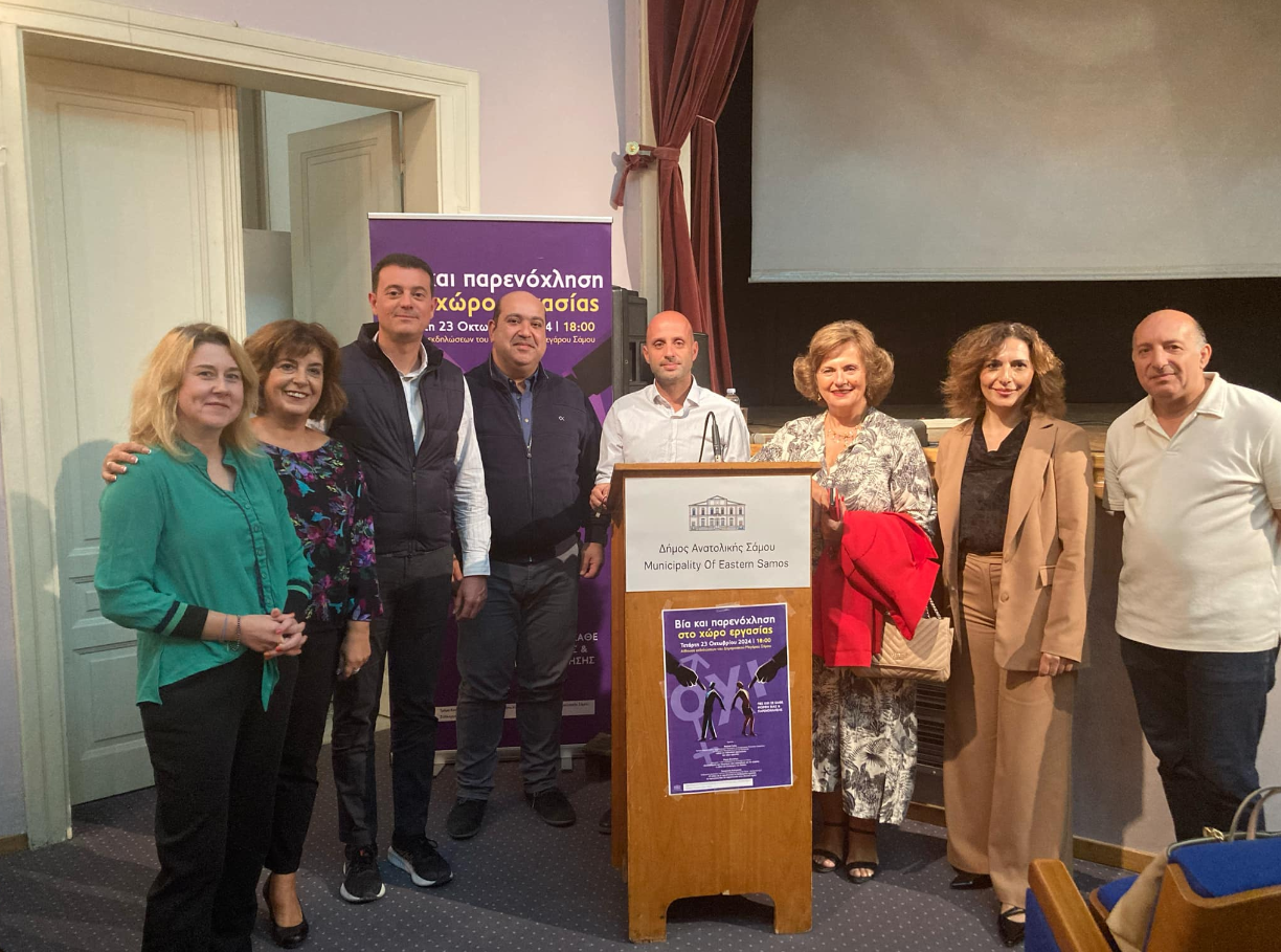 To Τμήμα Κοινωνικής Πολιτικής της Διεύθυνσης Κοινωνικής Πρόνοιας του Δήμου Ανατολικής Σάμου και ο Σύλλογος Υπαλλήλων Δήμων Σάμου πραγματοποίησαν ημερίδα με θέμα: «Βία και παρενόχληση στο χώρο εργασίας» την Τετάρτη 23/10/2024 στην αίθουσα εκδηλώσεων του Δημαρχιακού Μεγάρου Σάμου.