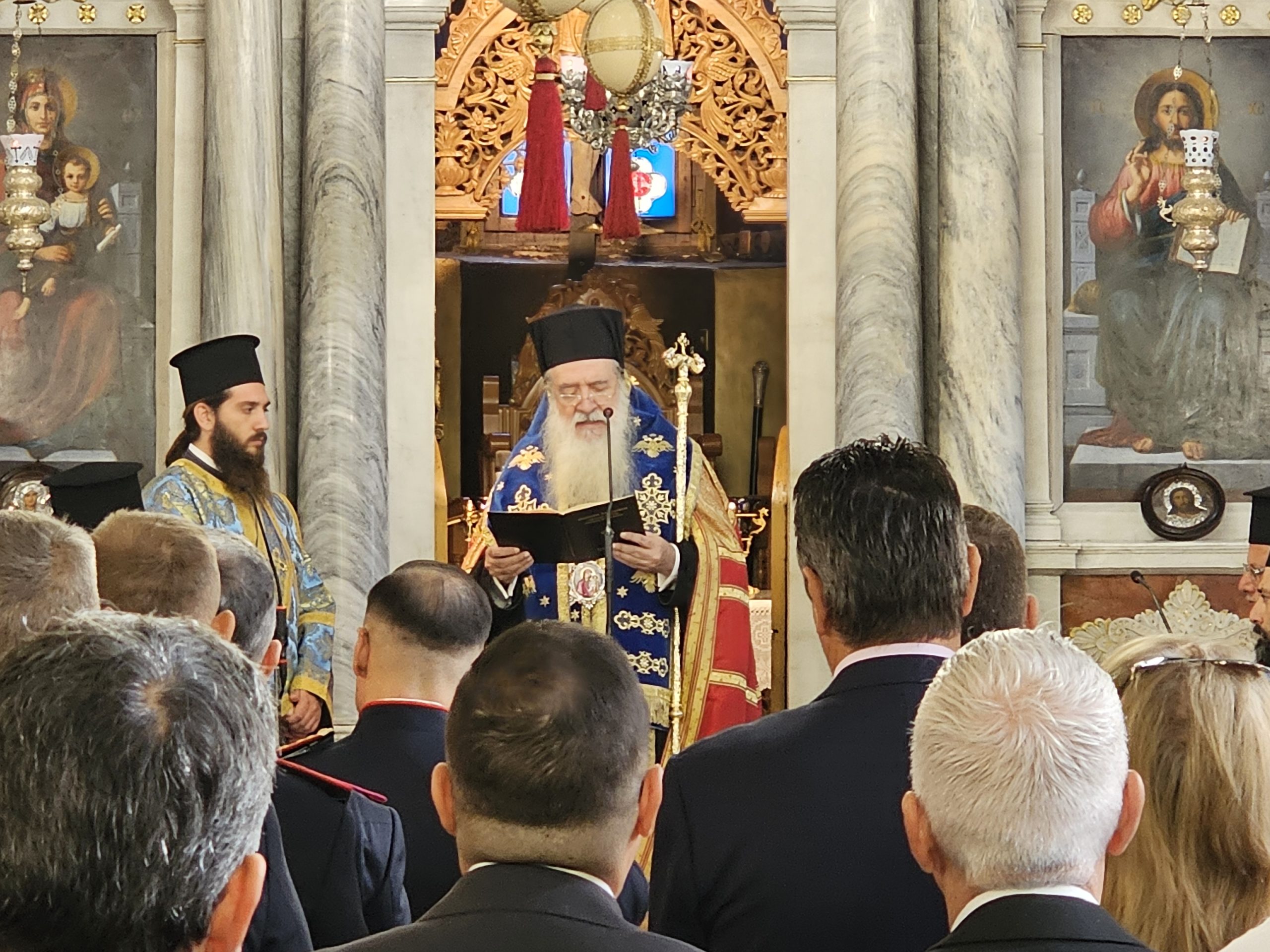 Λιγο αργοτερα πραγματοποιήθηκε η επίσημη έπαρση της σημαίας, μία τελετή που αναδεικνύει την εθνική υπερηφάνεια και το σεβασμό προς τους αγώνες των Ελλήνων. Ακολούθησε η επίσημη δοξολογία στον Ιερό Μητροπολιτικό Ναό Αγίου Νικολάου χοροστατούντος του Σεβασμιωτάτου Μητροπολίτου Σάμου & Ικαρίας κ.κ. Ευσεβίου, όπου παρευρέθηκαν τοπικές αρχές, φορείς και πλήθος κόσμου.
