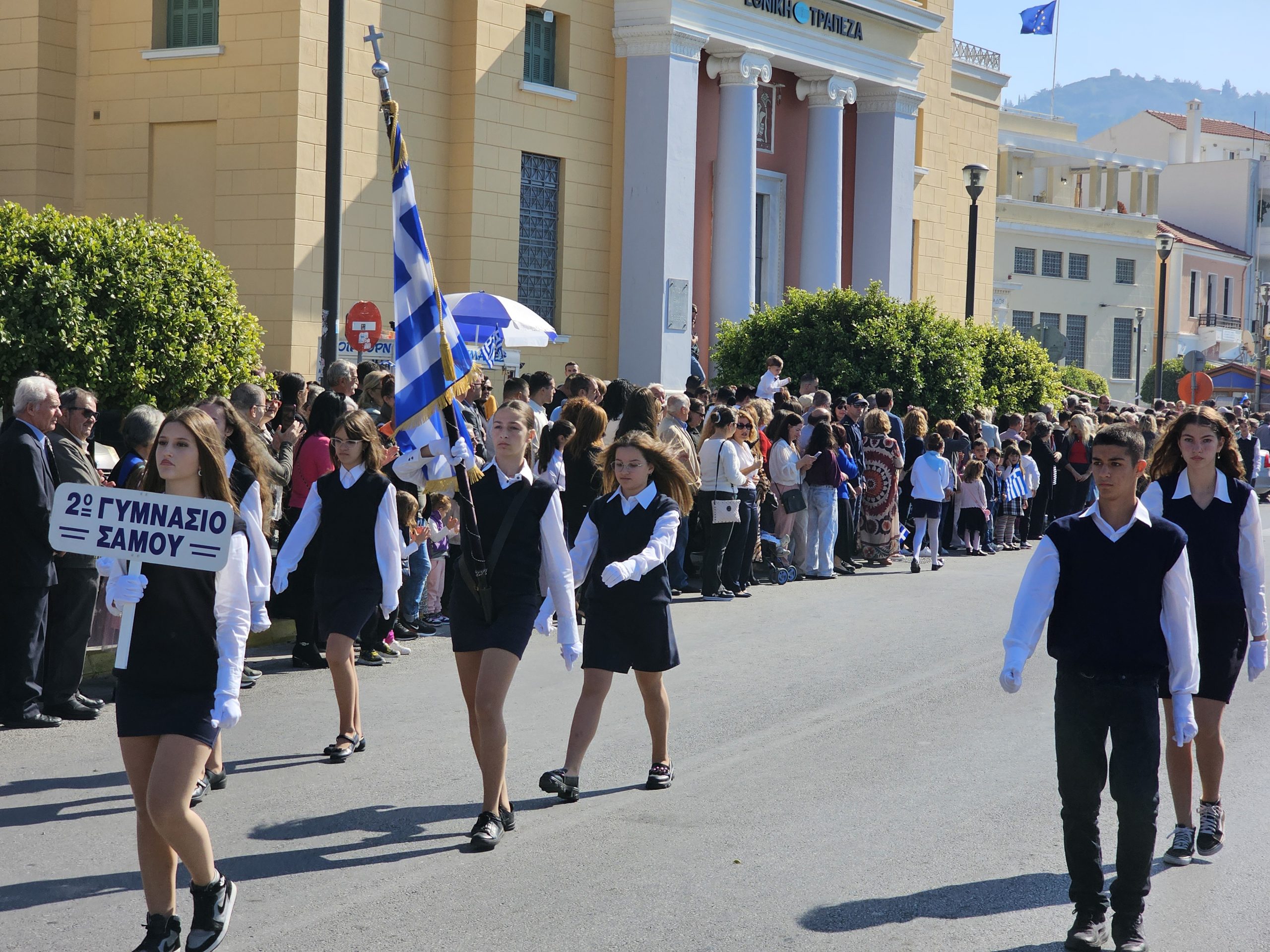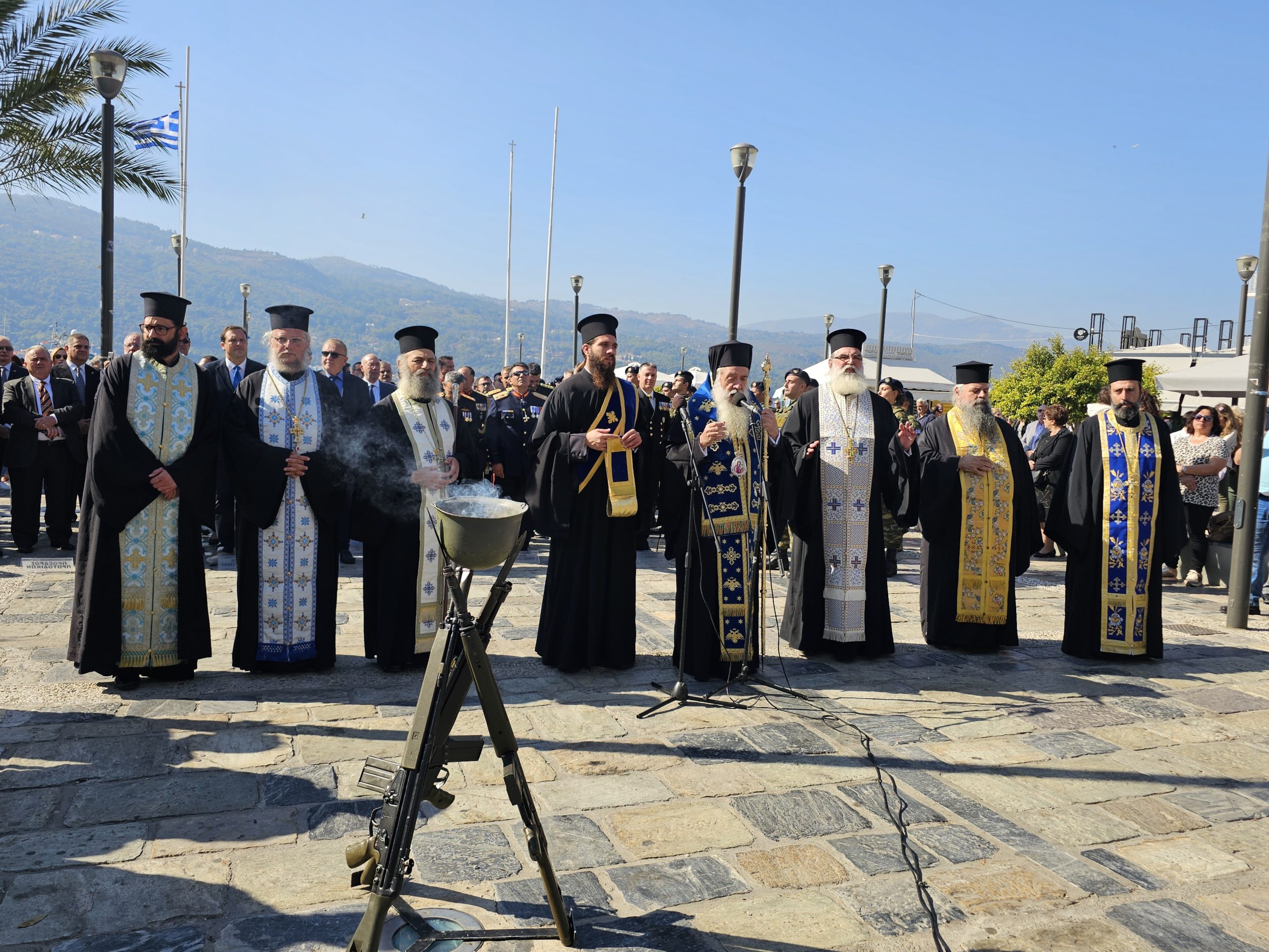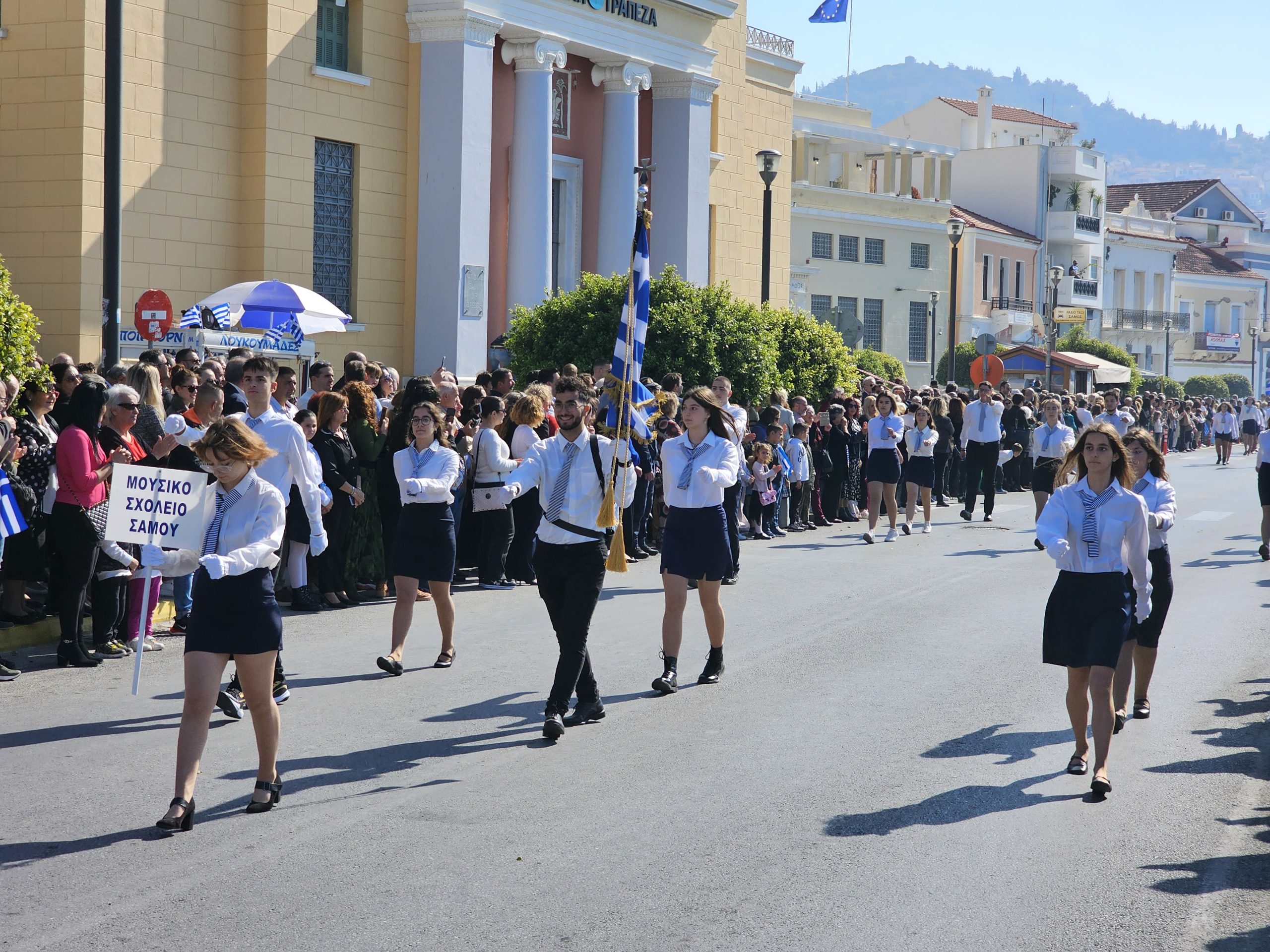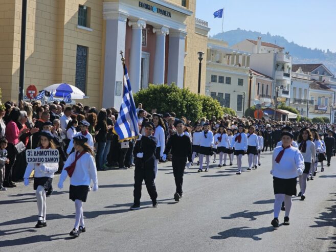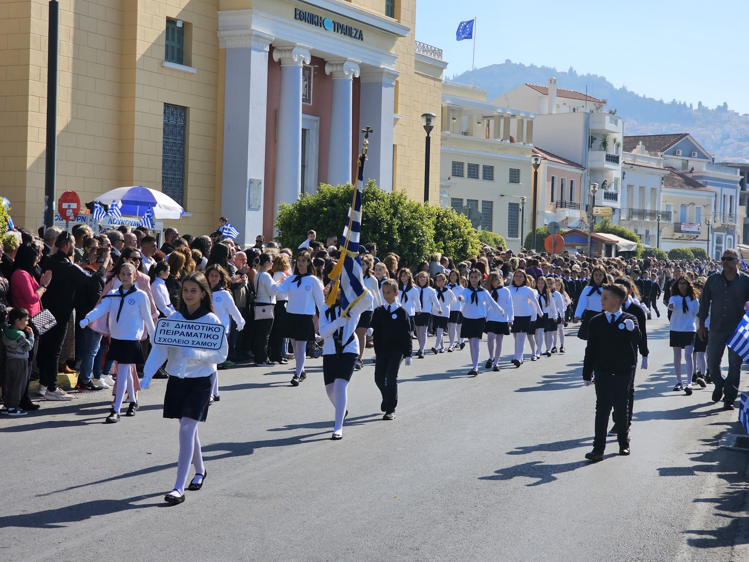 Η Σάμος, με σύμμαχο τον καλό καιρό, τίμησε την εθνική επέτειο της 28ης Οκτωβρίου με υπερηφάνεια. Οι εκδηλώσεις ξεκίνησαν νωρίς το πρωί της Δευτέρας, 28 Οκτωβρίου 2024, με θούρια και εμβατήρια που ακούγονταν από μεγαφωνική συσκευή στην Πλατεία Πυθαγόρα.