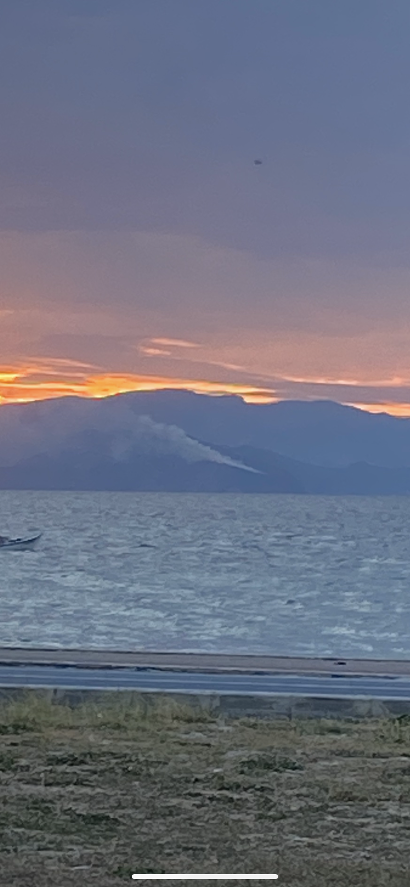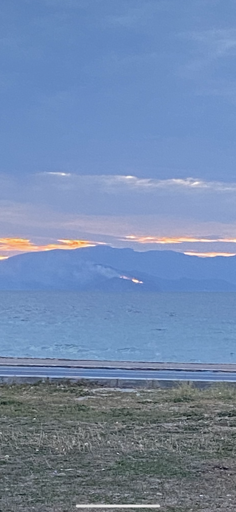 Η φωτιά στο Ακρωτήριο Πράσο όπως φαίνεται από το Κουσάντασι της Τουρκίας