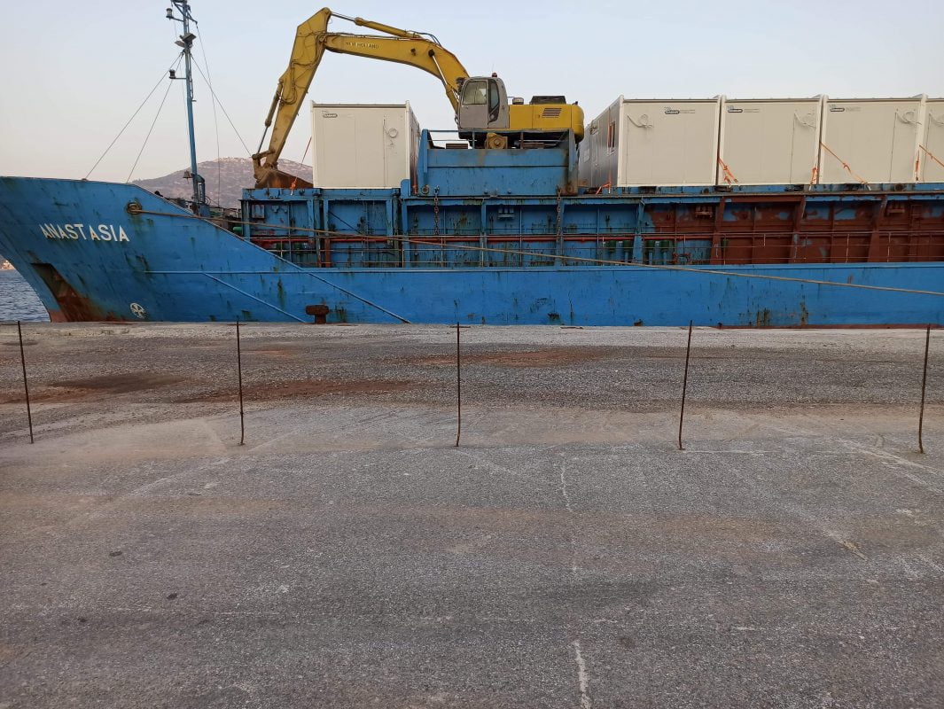 Το πλοίο μεταφοράς μεγάλων φορτίων, έφτασε στο λιμάνι της Σάμου στις 16.30 μ.μ, μεταφέροντας περίπου 45 εξοπλισμένους οικίσκους, τύπου container, για τη φιλοξενία μεταναστών .