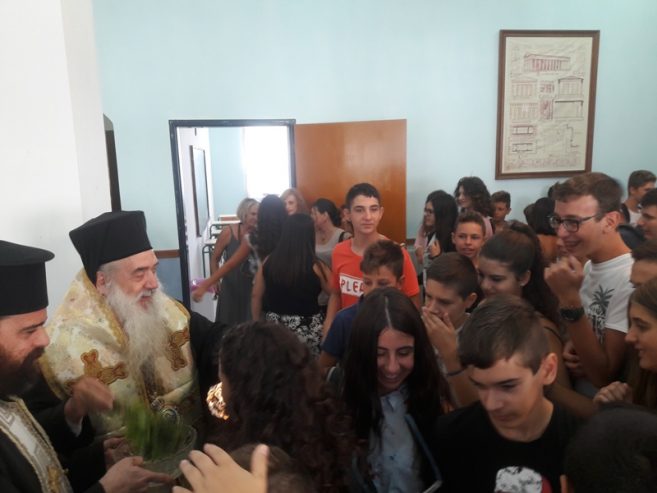 Ο Σεβασμιώτατος ποιμενάρχης μας κ. κ. Ευσέβιος  ετέλεσε τον καθιερωμένο αγιασμό για την έναρξη της νέας σχολικής χρονιάς  παρουσία των κατά τόπους αρχών. Συγκεκριμένα επεσκέφθη το Γυμνάσιο -Λύκειο  και Δημοτικό Μαραθοκάμπου , το Γυμνάσιο Καρλοβάσου ,το Λύκειο και ΕΠΑ.Λ  της πόλεως Σάμου. Απευθυνόμενος προς τους μαθητές και το διδακτικό προσωπικό των σχολείων απηύθυνε πατρικές ευχές και ευλογίες για την έναρξη των μαθημάτων τόνισε δε πως « Ἡ μόρφωση εἶναι ἕνα ἀπό τά μεγαλύτερα ἀγαθά γιά τόν ἄνθρωπο. Γιά νά καρποφορήσει, ὅμως πρέπει νά συνοδεύεται ἀπό συστηματική μελέτη, σοβαρή ἐργασία, ἀλλά καί καλλιέργεια τῆς ψυχῆς σας…..» Σε άλλο σημείο της ομιλίας του είπε «. Στήν μικρή κοινωνία τοῦ Σχολείου σας, νά ἀγωνίζεσθε, νά διακρίνεσθε γιά τήν φιλομάθεια, τήν εὐγένεια, τήν καλοσύνη, τόν ζῆλο γιά τήν ἀναζήτηση τῶν ἀληθειῶν, πού ἀφοροῦν στήν πνευματική πρόοδο τοῦ ἀνθρώπου» κατακλείοντας την ομιλία του δήλωσε Ἡ τοπική μας Ἐκκλησία πάντοτε θά εἶναι συμπαραστάτης σας καί πάντοτε θά ἀγωνίζεται νά σᾶς προστατεύει ἀπό τίς κακές καί ἐπικίνδυνες ἐπιρροές. Κι αὐτόν τόν χειμώνα θά σᾶς περιμένει στίς Κατηχητικές Συνάξεις τῆς Ἐνορίας σας, γιά νά γνωρίσετε καλύτερα τήν ὀρθόδοξη χριστιανική πίστη καί βέβαια θά σᾶς περιμένει στίς Κυριακάτικες θεῖες Λειτουργίες, ὅπου μπορεῖτε νά ζήσετε στιγμές παραδείσου».