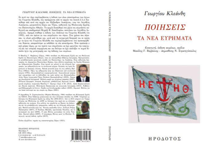 Γεωργίου Κλεάνθη, Ποιήσεις. Τα νέα ευρήματα (εισαγωγή – έκδοση κειμένων – σχόλια: Μ. Γ. Βαρβούνης – Δημ. Ν. Στρατηγόπουλος), Αθήνα 2021, εκδ. Ηρόδοτος – σειρά Ιδέες και Έρευνα, σελ. 295.