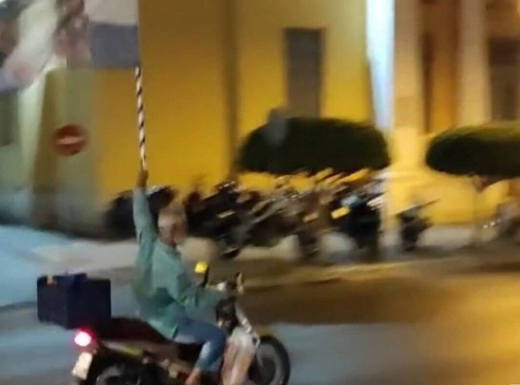 Ο άντρας της φωτογραφίας φαίνεται να είναι αρκετά φιλικός με τον κόσμο – Φωνάζει “Μετανοείτε” και άλλες παρόμοιες θρησκευτικού περιεχομένου εκφράσεις. Επόμενος σταθμός του η γειτονική Χίος.
