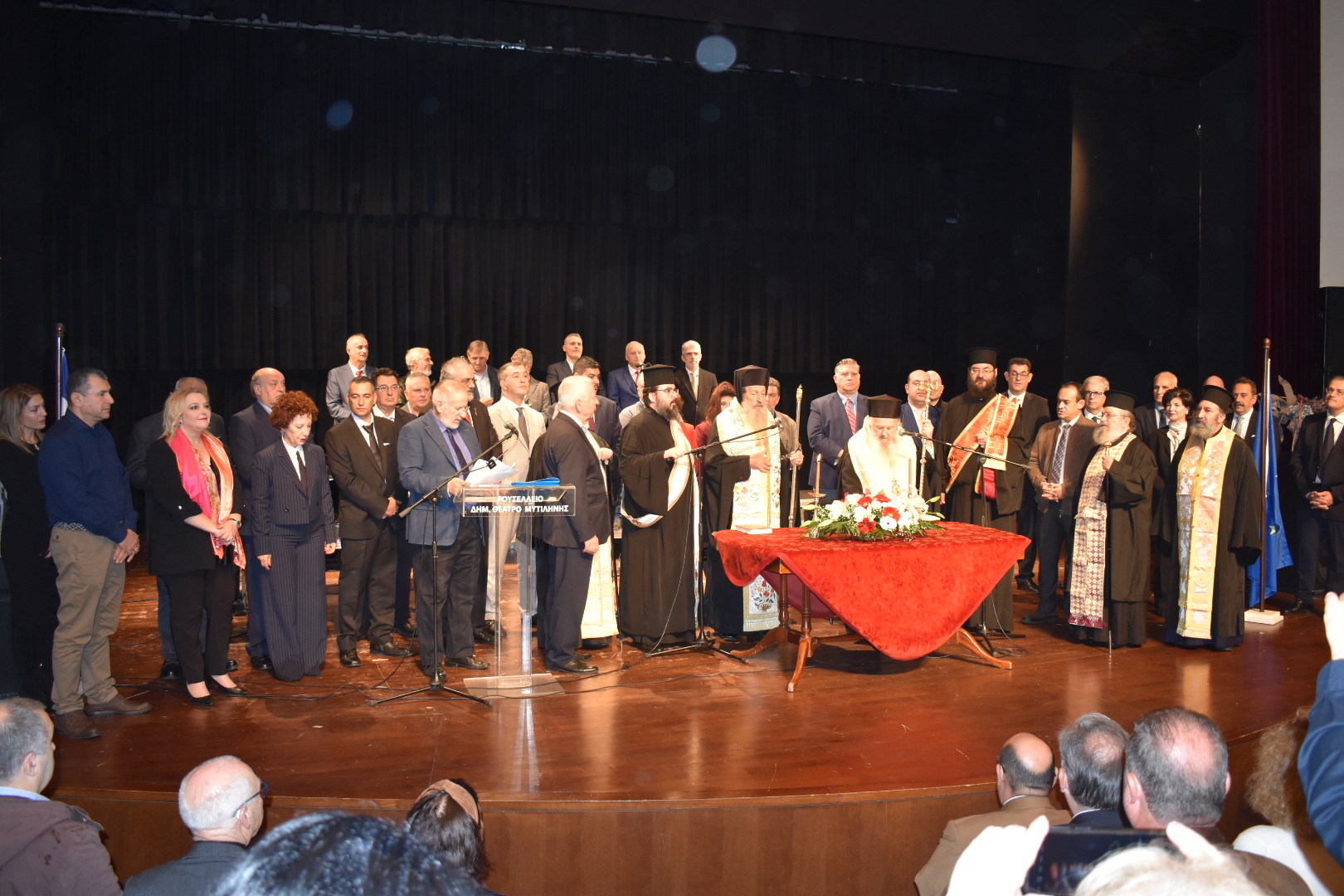 Στο Δημοτικό Θέατρο Μυτιλήνης χοροστατούντων των Σεβασμιότατων Μητροπολιτών Μυτιλήνης -Ερεσού και Πλωμαρίου κ.κ. Ιακώβου και Μηθύμνης κκ Χρυσοστόμου πραγματοποιήθηκε σήμερα 16.12.2023 η ορκωμοσία του επανεκλεγέντος Περιφερειάρχη Βορείου Αιγαίου Κωνσταντίνου Μουτζούρη και των εκλεγμένων 35 Περιφερειακών Συμβούλων, όπως αυτοί προέκυψαν από τις αρχικές και επαναληπτικές εκλογές της 8ης και 15ης Οκτωβρίου.