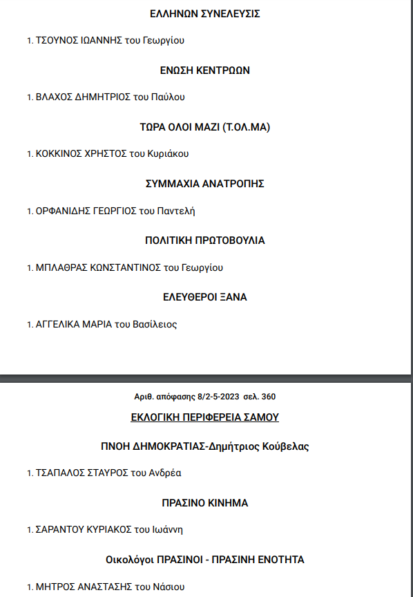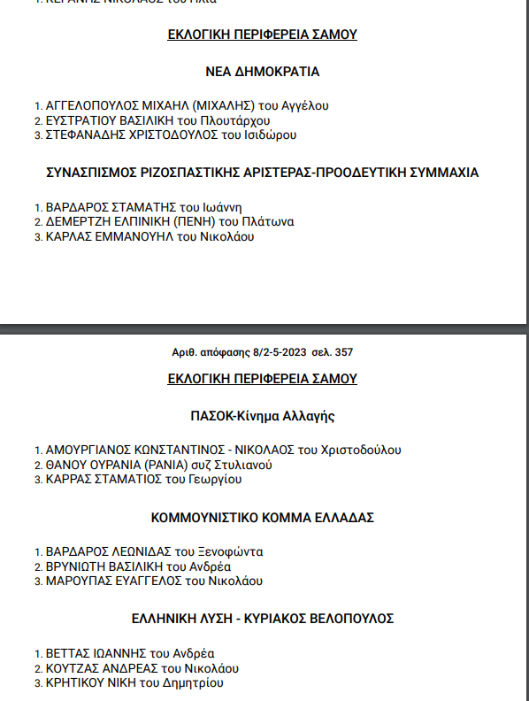 Εκλογές 2023: Όλοι οι υποψήφιοι στον Νομό Σάμου