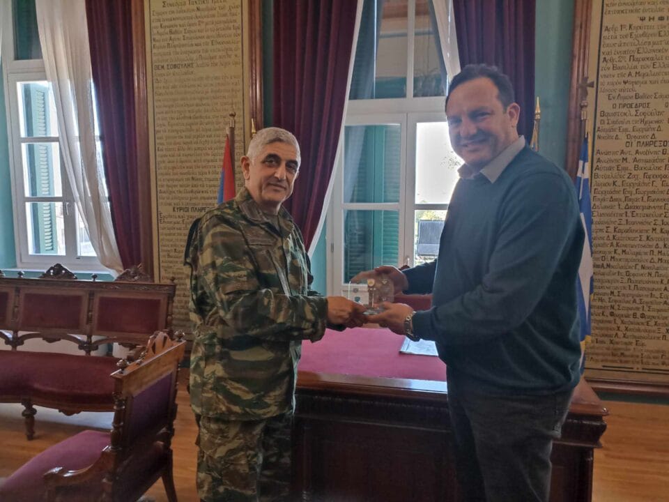 Συνάντηση με τον νέο διοικητή της Ανωτάτης Στρατιωτικής Διοίκησης Εσωτερικού και Νήσων (Α.Σ.Δ.Ε.Ν.), Αντιστράτηγο Εμμανουήλ Θεοδώρου, είχε σήμερα Πέμπτη 1η Φεβρουαρίου 2024, στο γραφείο του, ο Δήμαρχος Ανατολικής Σάμου κ. Πάρης Παπαγεωργίου .