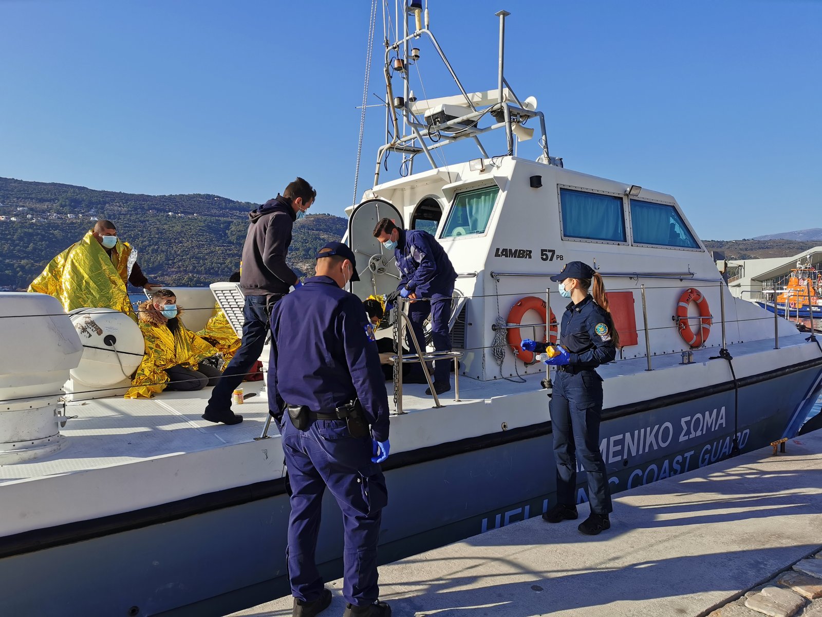 Άμεσα μετέβησαν ένα περιπολικό σκάφος Λ.Σ.-ΕΛ.ΑΚΤ., ένα σκάφος της δύναμης FRONTEX καθώς και ένα περιπολικό όχημα Λ.Σ.-Ε.ΑΚΤ.. Το περιπολικό σκάφος εντόπισε αρχικά, πνευστή λέμβο με πέντε (05) επιβαίνοντες, τους οποίους και περισυνέλεξε καλά στην υγεία τους. Σύμφωνα με δήλωσή τους, στη λέμβο επέβαιναν τρία (03) ακόμη άτομα τα οποία έπεσαν στη θάλασσα.