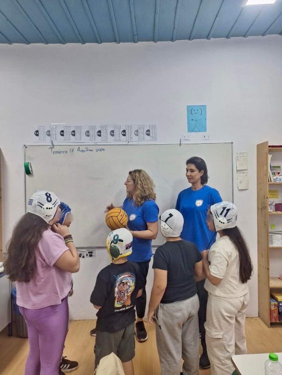 Στο πλαίσιο του προγράμματος “Μαθαίνω να παίζω – Μαθαίνω να ζω”, που υλοποιήθηκε από το Γραφείο Αθλητισμού Λ.Σ.-ΕΛ.ΑΚΤ. του Υ.ΝΑ.Ν.Π. σε συνεργασία με την Ελληνική Ολυμπιακή Επιτροπή, οι μαθητές είχαν την ευκαιρία να γνωρίσουν από κοντά τον κόσμο του υγρού στίβου χάρη στην παρουσία της αργυρής Ολυμπιονίκη Υδατοσφαίρισης Αντιπλοίαρχου Λ.Σ. Ελληνάκη Γεωργίας.