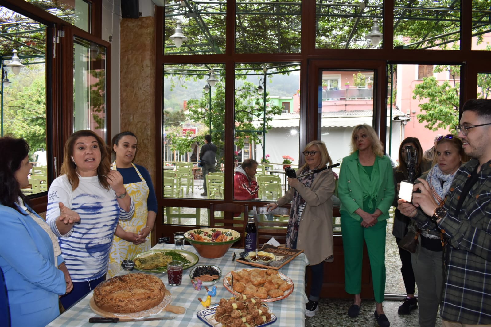 Στην συνέχεια οι δημοσιογράφοι ενημερώθηκαν για τα παραδοσιακά προϊόντα και τον τρόπο παρασκευής τους, είχαν την ευκαιρία να περιηγηθούν στην Αγιάσο και να διαπιστώσουν και τους λόγους για τους οποίους η Αγιάσος έχει γίνει ένας από τους πλέον χειμερινούς προορισμούς.