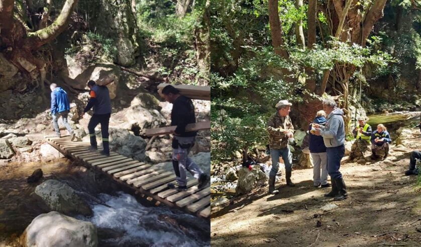 Ξύλα και φερτά υλικά απομακρύνθηκαν, το μονοπάτι καθαρίστηκε και γέφυρες δημιουργήθηκαν εκ νέου.