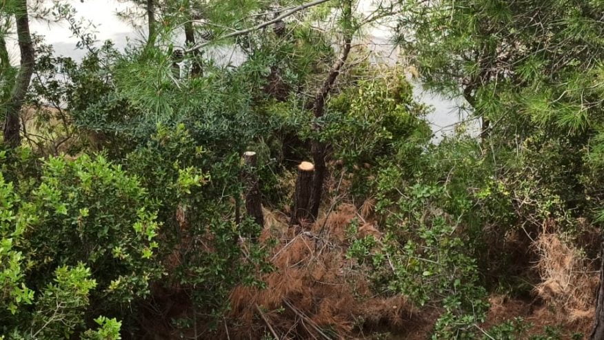 Πιο συγκεκριμένα, άγνωστοι έχουν προχωρήσει στο κόψιμο τουλάχιστον 5 νέων πεύκων προκαλώντας τη στεναχώρια και την οργή όσων περνούν απο την περιοχή.