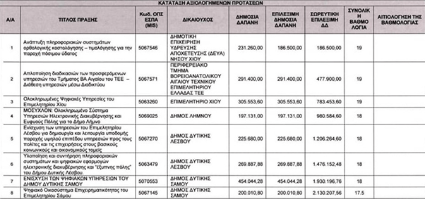 Ανακοινώθηκε ο προσωρινός πίνακας κατάταξης από την Διαχειριστική Αρχή της Περιφέρειας Βορείου Αιγαίου, στο πλαίσιο της πρόσκλησης με τίτλο «Ενίσχυση των δημόσιων υπηρεσιών και οργανισμών της Περιφέρειας για δημιουργία και λειτουργία υποδομής παροχής υψηλού επιπέδου υπηρεσιών προς τους πολίτες και τις επιχειρήσεις στους βασικούς κοινωνικούς και οικονομικούς τομείς».