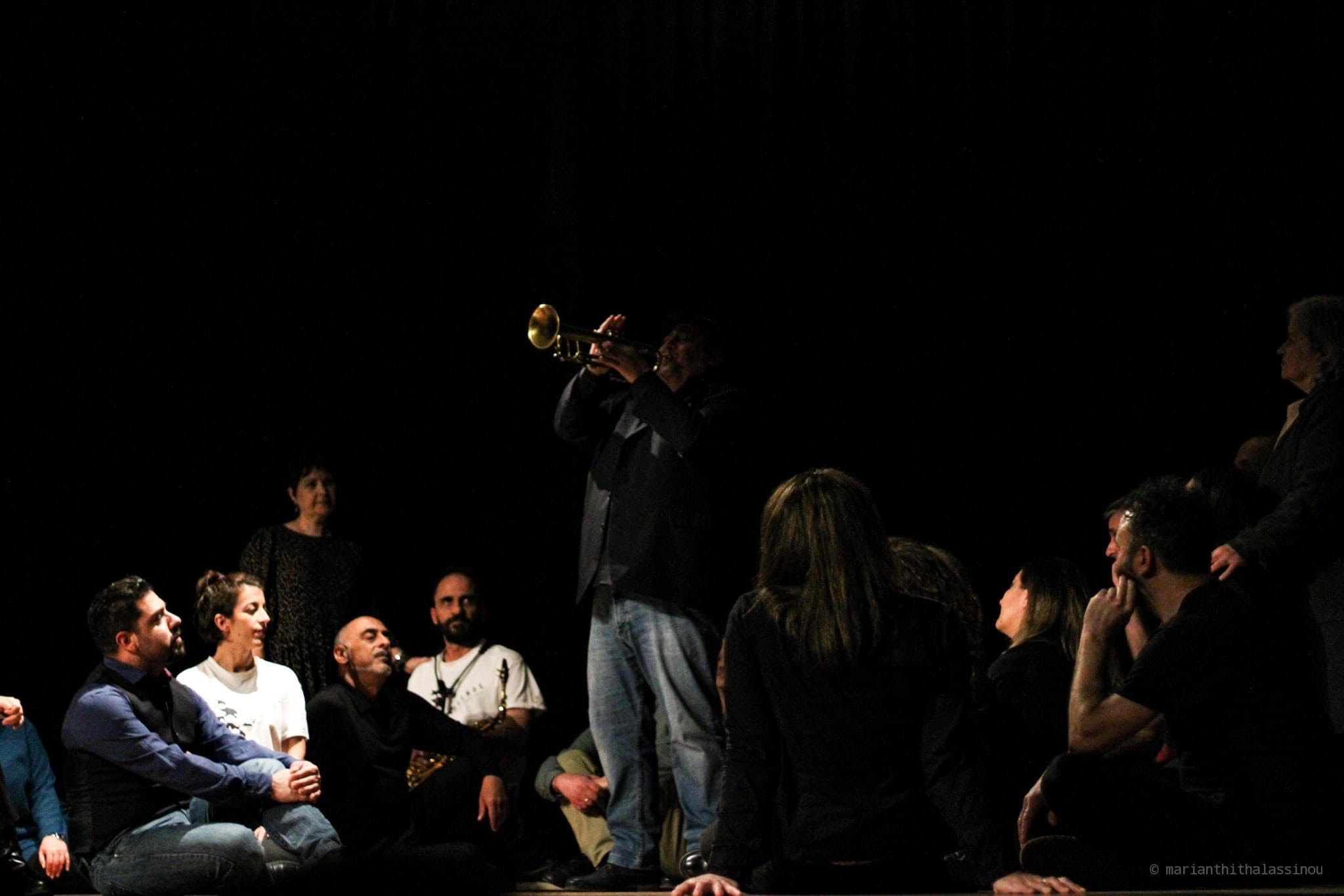 Στο κατάμεστο θέατρο του «Επικούρειου Πολιτιστικού Κέντρου Σάμου» το κοινό απήλαυσε θεατρικά σκετς, ποιήματα σε θεατρική απόδοση και τραγούδια από τη Θεατρική Ομάδα Σάμου, την Duente Ικαρίας, την Πατμιακή Σκηνή και το Θεατρικό Εργαστήρι Κω-acTa, με τη συμμετοχή των μουσικών Δημήτρη Πράπα και Μανώλη Ετοίμου. Παράλληλα στηρίχτηκε το αίτημα της Θεατρικής Ομάδας Σάμου για επιτάχυνση των διαδικασιών λειτουργίας του κέντρου και χρήση των θεατρικών του χώρων.