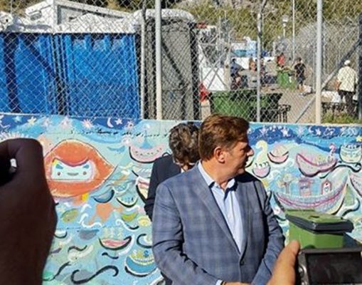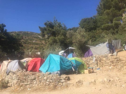Στον εξωτερικό χώρο του Hotspot , ο  τομεάρχης Μεταναστευτικής Πολιτικής της Νέας Δημοκρατίας είδε τον μεγάλο αριθμό προσφύγων και μεταναστών που διαμένουν σε σκηνές ,σε άθλιες συνθήκες ,λέγοντας χαρακτηριστικα “Εικόνες ντροπής και εξαθλίωσης που αποτυπώνουν το μέγεθος της κυβερνητικής αναλγησίας”