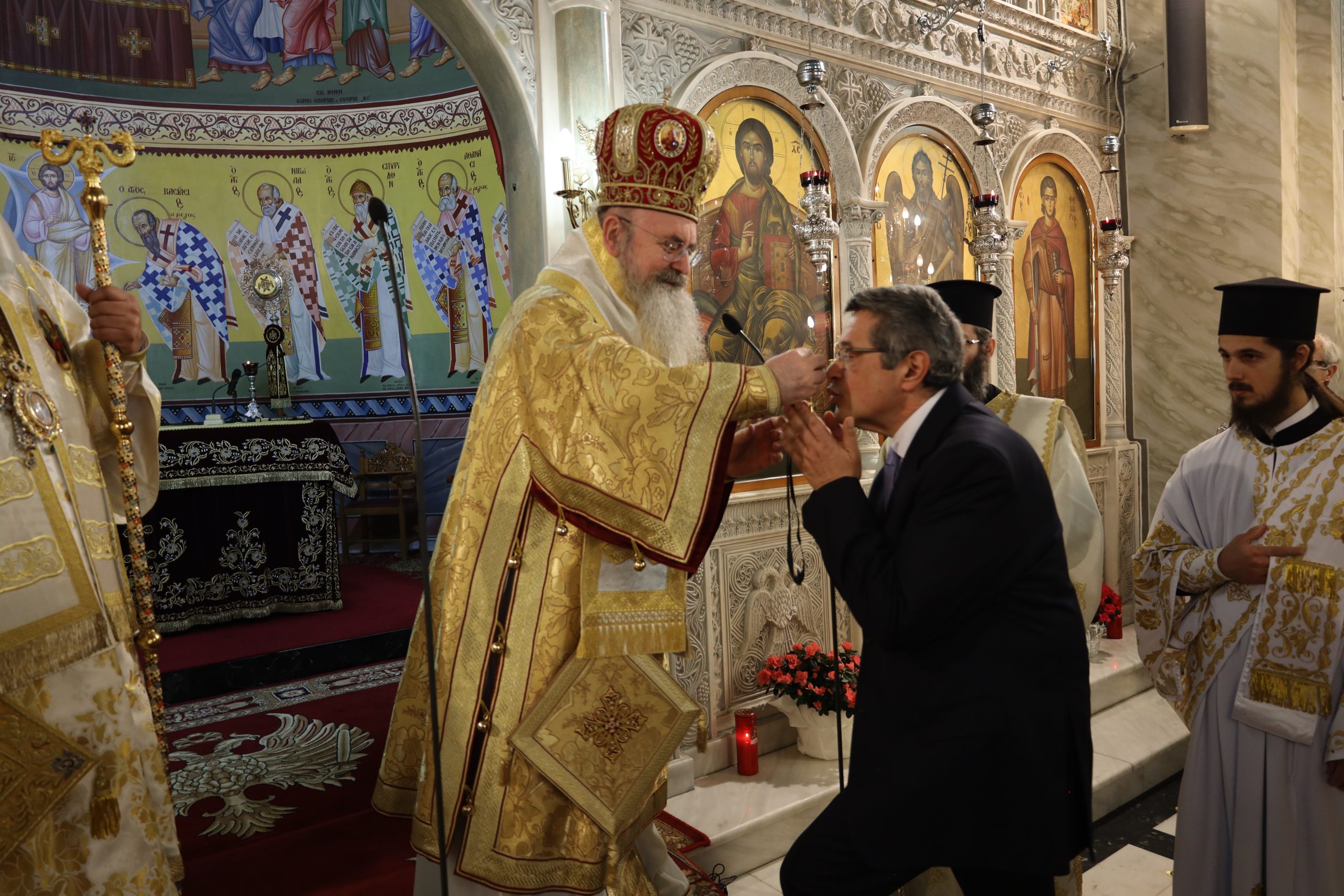 Στον πανηγυρίζοντα ναό της αγίας Αναστασίας της Πατρικίας, της Ιεράς Μητροπόλεως Περιστερίου, την Κυριακή 10 Μαρτίου 2024, ο Σεβασμιώτατος Μητροπολίτης Περιστερίου κ. Γρηγόριος Παπαθωμάς, Καθηγητής της Θεολογικής Σχολής του Εθνικού και Καποδιστριακού Πανεπιστημίου Αθηνών, τίμησε τον Καθηγητή κ. Μανόλη Γερ. Βαρβούνη, Κοσμήτορα της Σχολής Κλασικών και Ανθρωπιστικών Σπουδών του Δημοκριτείου Πανεπιστημίου Θράκης, με την ανώτατη διάκριση της Μητροπόλεως, τον χρυσό σταυρό του αγίου Αντωνίου του Μεγάλου.