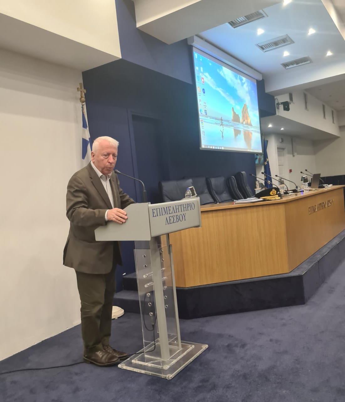 Ο Περιφερειάρχης Βορείου Αιγαίου Κωνσταντίνος Μουτζούρης παρέστη και απεύθυνε χαιρετισμό στην Ημερίδα που πραγματοποιήθηκε σήμερα 29.03.2023 στην αίθουσα του Επιμελητηρίου Λέσβου, με θέμα: «Εφαρμογή του Εθνικού Μηχανισμού Πολιτικής Προστασίας – Διακλαδικότητα & Τακτική Εμπλοκής Δυναμικού & Μέσων».