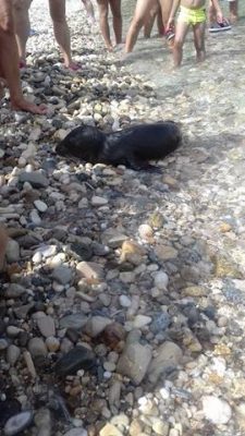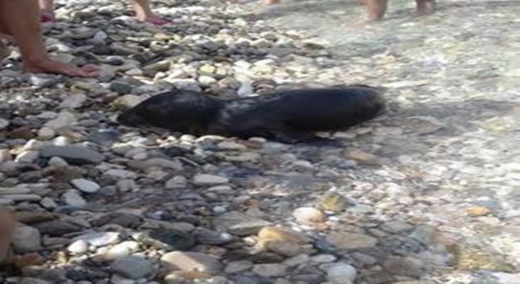 Μια μικρή φώκια  έχει βγεί στην παραλία Τσαμαδού στη Σάμο .Εμφανώς εξαντλημένη και αφυδατωμένη, αφού για κάποιο λόγο έχει αποκοπεί από την μητέρα της.