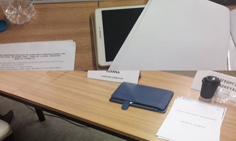 Στο δημοτικό συμβούλιο της Τρίτης 30/10, παρόντα ήταν τα 31 μέλη του δημοτικού συμβουλίου, εκ των οποίων μονό οι 10 εξ αυτών είχαν στα χέρια τους τις ταμπλέτες (δεν είναι η μοναδικη φορά που γίνεται αυτό).