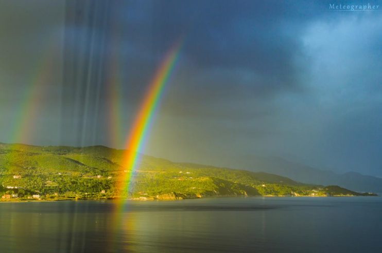 Ένα άκρως εντυπωσιακό και σπάνιο φαινόμενο κατέγραψε με τον φακό του ο φυσικός και φωτογράφος Μανώλης Θράβαλος, που απαθανάτισε ένα τριπλό ουράνιο τόξο στον κόλπο Βαθέος στη Σάμο.
