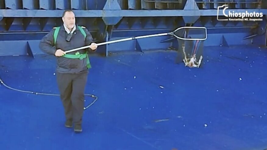 Χίος: Ύπαρχος έσωσε γάτα στον καταπέλτη του Blue Star Myconos [βίντεο]