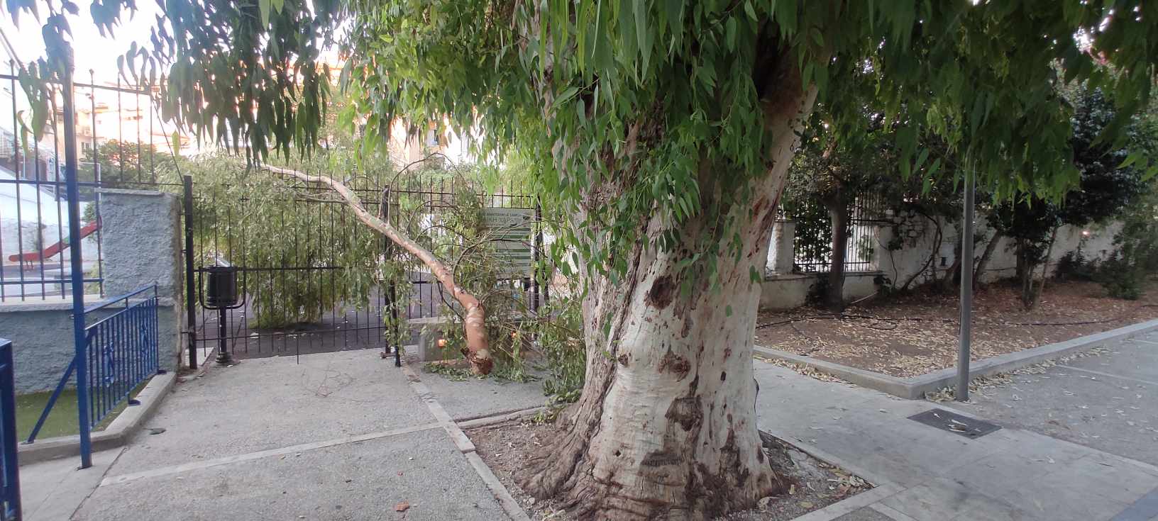 Ένα μεγάλο κλαδί δέντρου έπεσε στην είσοδο της παιδικής χαράς