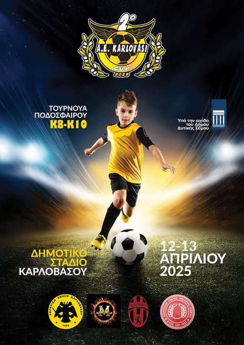 Με ιδιαίτερη χαρά, ο Δήμος Δυτικής Σάμου σας προσκαλεί να παρακολουθήσετε το 2ο Τουρνουά Ποδοσφαίρου “Α.Ε. KARLOVASI CUP 2024”, το οποίο διοργανώνεται για δεύτερη συνεχόμενη χρονιά από την Α.Ε. Καρλοβασίου, υπό την αιγίδα του Δήμου Δυτικής Σάμου.