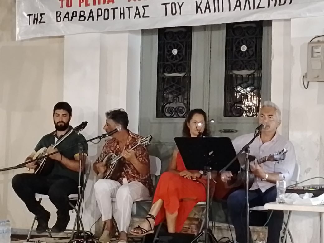 Η εκδήλωση πλαισιώθηκε από μουσική εκδήλωση με τραγούδια των λαϊκών αγώνων, που ερμήνευσαν οι μουσικοί Γρηγόρης Βασίλας, Μανώλης Καλπάκης, Κατερίνα Πετροπούλου και Μίλτος Χρυσανθίδης.