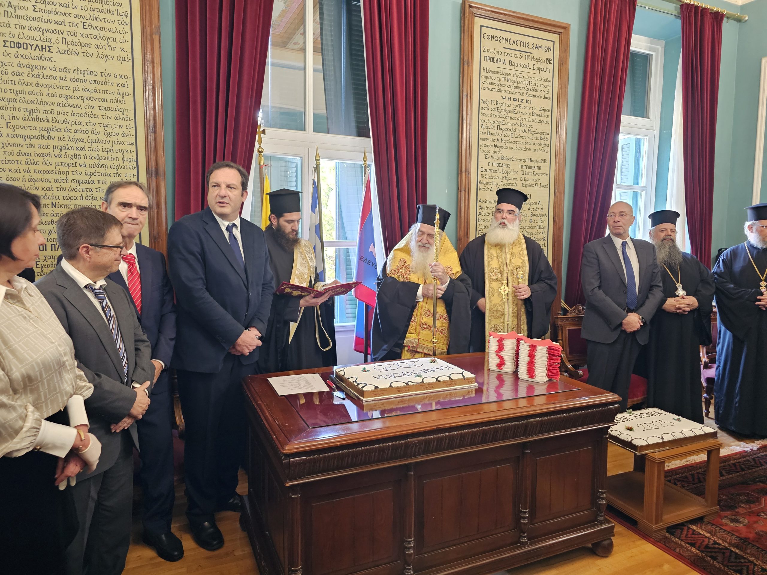 Με ευχές για υγεία, ευημερία και ενίσχυση της αυτοδιοίκησης πραγματοποιήθηκε η κοπή της Πρωτοχρονιάτικης πίτας του Δήμου Ανατολικής Σάμου για το 2025 από τον Δήμαρχο Πάρη Παπαγεωργίου. Η εκδήλωση πραγματοποιήθηκε με τις ευλογίες του Σεβασμιότατου Μητροπολίτη Σάμου και Ικαρίας κκ Ευσεβίου και την παρουσία μελών της δημοτικής αρχής, εκπροσώπων παρατάξεων της αντιπολίτευσης στο Δημοτικό Συμβούλιο, καθώς και εκπροσώπων τοπικών στρατιωτικών, αστυνομικών, πυροσβεστικών και λιμενικών αρχών.