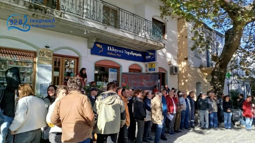 Μαζική κινητοποίηση στις Ράχες Ικαρίας για το κλείσιμο του καταστήματος ΕΛΤΑ