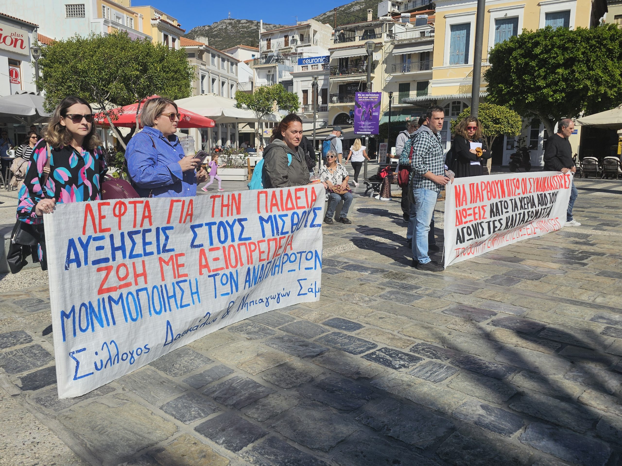 Στην Πλατεία Πυθαγόρα, στο Βαθύ της Σάμου, πραγματοποιήθηκε με επιτυχία η κινητοποίηση των εκπαιδευτικών της πρωτοβάθμιας εκπαίδευσης το μεσημέρι της Τετάρτης, στο πλαίσιο της πανελλαδικής απεργίας της 23ης Οκτωβρίου, η οποία υποστηρίχθηκε από την ΑΔΕΔΥ.