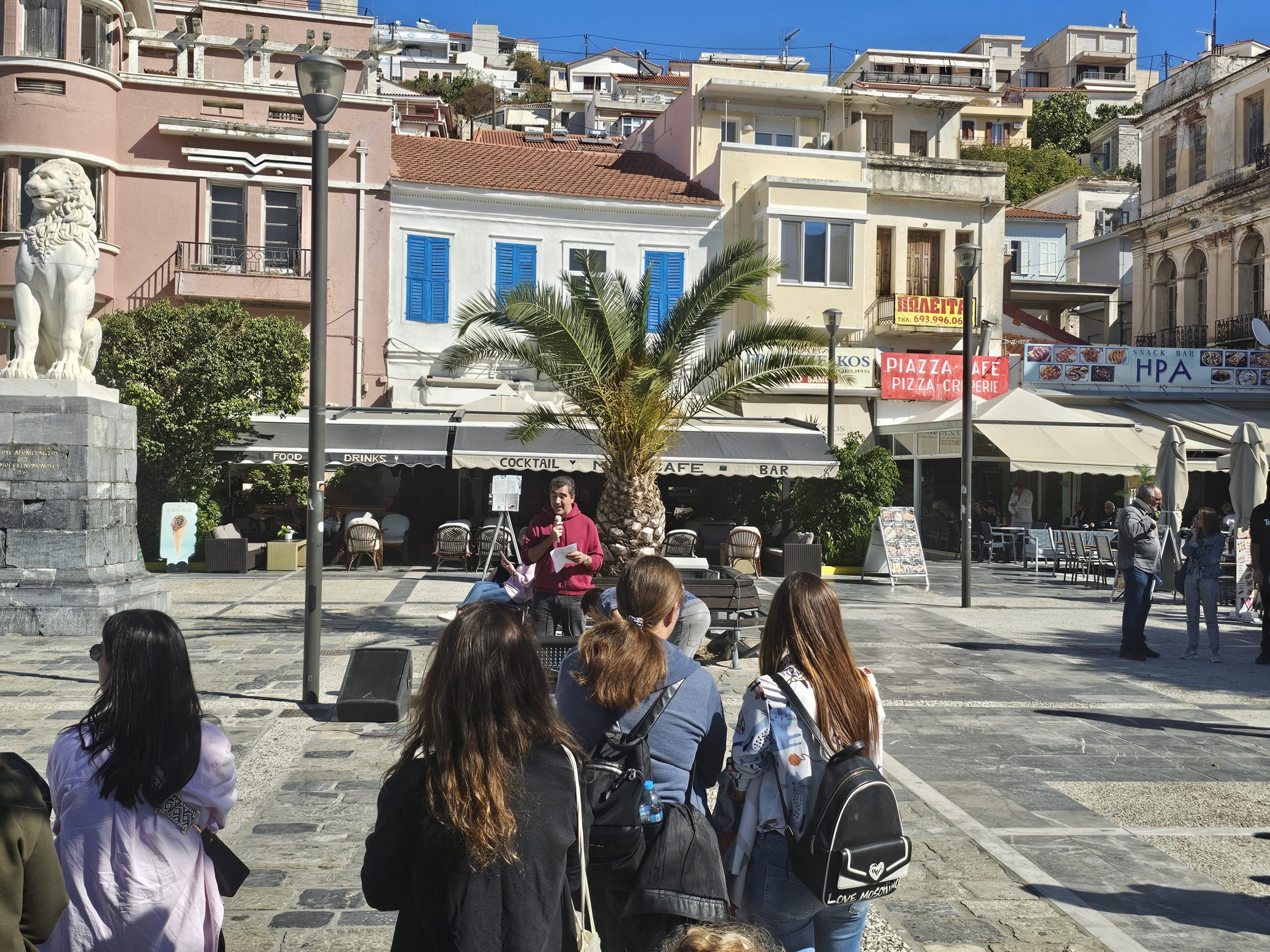Η διαμαρτυρία ξεκίνησε με ομιλίες από τον κ. Βαγγέλη Μαρουπά, ταμία του Συλλόγου Δασκάλων και Νηπιαγωγών Σάμου, και την κ. Ελπινίκη Δεμερτζή, πρόεδρο της ΕΛΜΕ Σάμου.