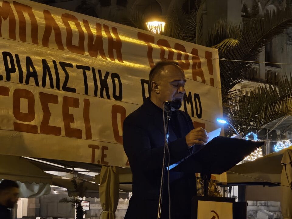 Στη συνέχεια ο βουλευτής του Κόμματος Νίκος Παπαναστάσης, κεντρικός ομιλητής στη συγκέντρωση αναφέρθηκε στα σοβαρά προβλήματα που αντιμετωπίζει το νησί, ξεκινώντας από την αποκατάσταση των ζημιών του σεισμού της 30ης Οκτώβρη 2020, « που 4 χρόνια μετά παραμένουν στη κατάσταση της επόμενης μέρας του σεισμού, με σχολεία και κτίρια του Πανεπιστημίου κατεστραμμένα, με ανθρώπους ακόμη ξεσπιτωμένους να έχουν μπλέξει σε έναν κυκεώνα γραφειοκρατικών διαδικασιών που δεν τελειώνουν, με τις λαμαρίνες ακόμη στους δρόμους γύρω από ετοιμόρροπα κτίρια». Σημείωσε τις παρεμβάσεις του ΚΚΕ στη Βουλή και επανέλαβε τα βασικά αιτήματα για «άμεση αποκατάσταση των ζημιών στις δημόσιες υποδομές , την 100% αποζημίωση όλων των πληγέντων και μέχρι τότε την καταβολή στην ώρα του επιδόματος ενοικίου». Στη συνέχεια αναφέρθηκε στο τεράστιο πρόβλημα των δομών υγείας με την υποστελέχωση του Νοσοκομείου που οδηγείται στην απαξίωση καθώς και των Κέντρων Υγείας και των περιφερειακών ιατρείων που υπολειτουργούν. «Η κυβέρνηση –τόνισε- αρνείται τη χρηματοδότηση των δημόσιων δομών υγείας και την πρόσληψη μόνιμου και επαρκούς ιατρικού και νοσηλευτικού προσωπικού, επικαλούμενη δημοσιονομικές δυσκολίες τη στιγμή που δίνει άφθονο χρήμα στους μεγαλοεπιχειρηματίες για τη περιβόητη ανάπτυξη, τη στιγμή που η φρεγάτα στην Ερυθρά θάλασσα, μακριά και αντίθετα στα λαϊκά συμφέροντα, κοστίζει 500 χιλιάδες ευρώ τη μέρα». Αναφέρθηκε ακόμη στα προβλήματα επιβίωσης που αντιμετωπίζουν οι αγροτοκτηνοτρόφοι του νησιού και υπογράμμισε την απαίτηση να ικανοποιηθούν τα δίκαια αιτήματά τους για κατάργηση του ΦΠΑ στα αγροτικά εφόδια και τα καύσιμα, για 100% αποζημιώσεις από τον ΕΛΓΑ των καταστροφών στη παραγωγή κ.ά.