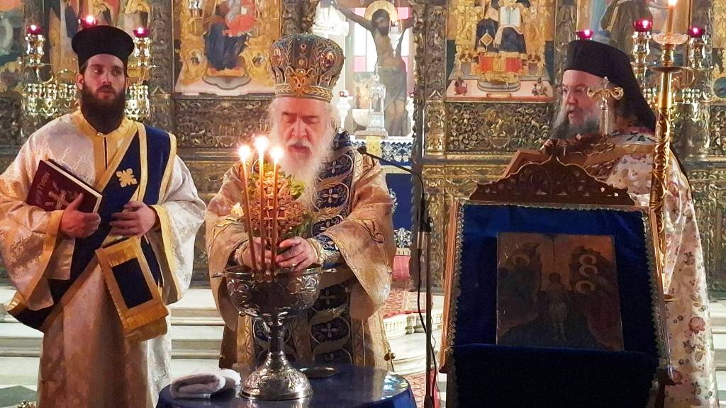 Την κυριώνυμο ημέρα Δευτέρα 6 Ιανουαρίου ο Σεβασμιώτατος Ποιμενάρχης μας χοροστάτησε στον Όρθρο, ιερούργησε και τέλεσε την ακολουθία του Μεγάλου Αγιασμού στον Ιερό Ναό Αγίου Αντωνίου Άνω Βαθέος.