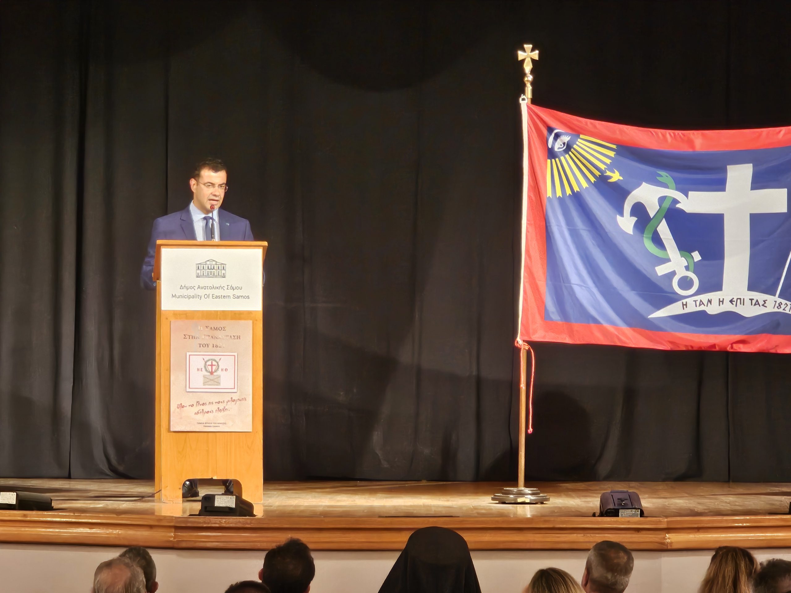 Στον χαιρετισμό του, ο Δήμαρχος Ανατολικής Σάμου κ. Πάρης Παπαγεωργίου αναφέρθηκε στη σπουδαία συμβολή της Ύδρας και των Υδραίων στην Επανάσταση του 1821 και στη Ναυμαχία της Σάμου. Χαρακτηριστικά ανέφερε πως «Η παρουσία σου, αγαπητέ Δήμαρχε, φίλε Γιώργο Κουκουδάκη, είναι τιμή για το νησί μας και μας επιτρέπει να αποτίσουμε φόρο τιμής στο νησί σου και στους Υδραίους που στάθηκαν στο πλευρό των Σαμιωτών».