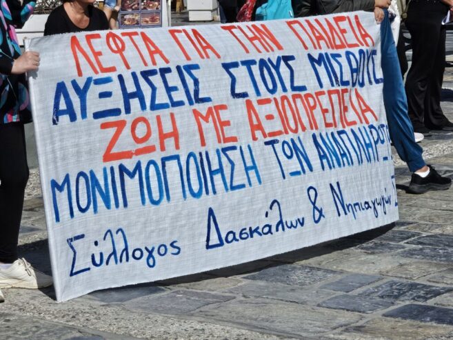 Με κύρια αιτήματα την αποκατάσταση του 13ου και 14ου μισθού, την κατάργηση της κατηγοριοποίησης των σχολείων μέσω της αξιολόγησης, και την επανασύσταση των σχολικών επιτροπών για την οικονομική ασφάλεια των σχολείων, οι εκπαιδευτικοί συνεχίζουν τον αγώνα τους απέναντι στις πολιτικές που πλήττουν τον κλάδο και την εκπαίδευση.