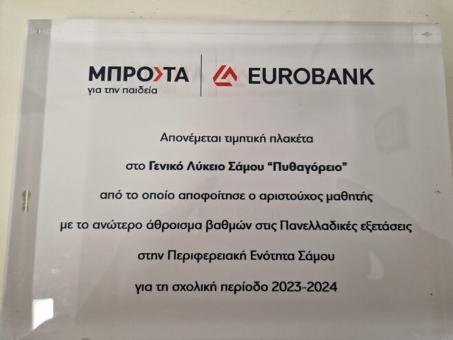 Η μαθήτρια του Γενικού Λυκείου Σάμου (ΓΕΛ) Εύα Αθανασάκη πέτυχε την υψηλότερη βαθμολογία στις Πανελλαδικές Εξετάσεις του 2024 στην Περιφερειακή Ενότητα Σάμου, φέρνοντας μία ακόμα διάκριση για το σχολείο της.
