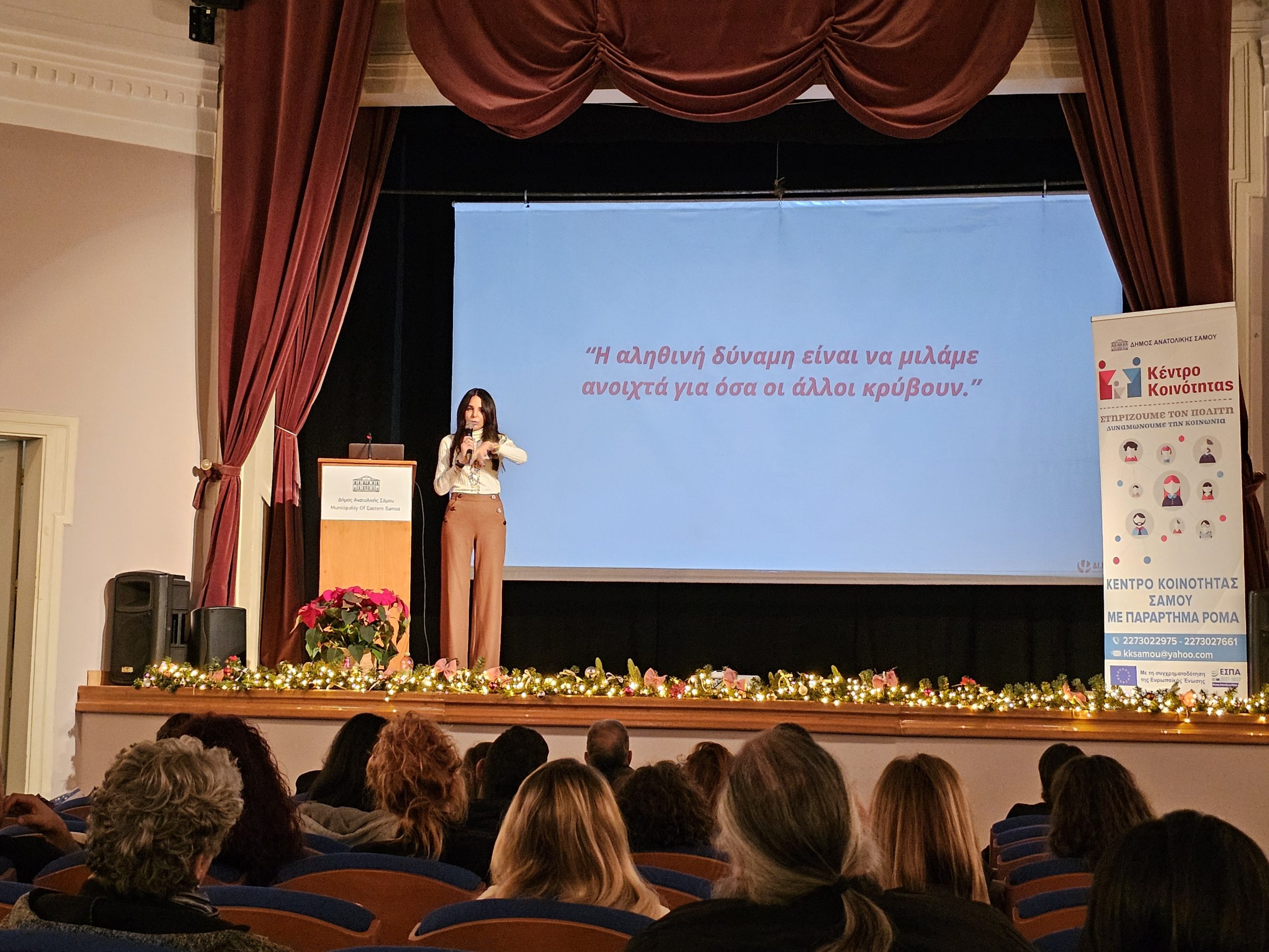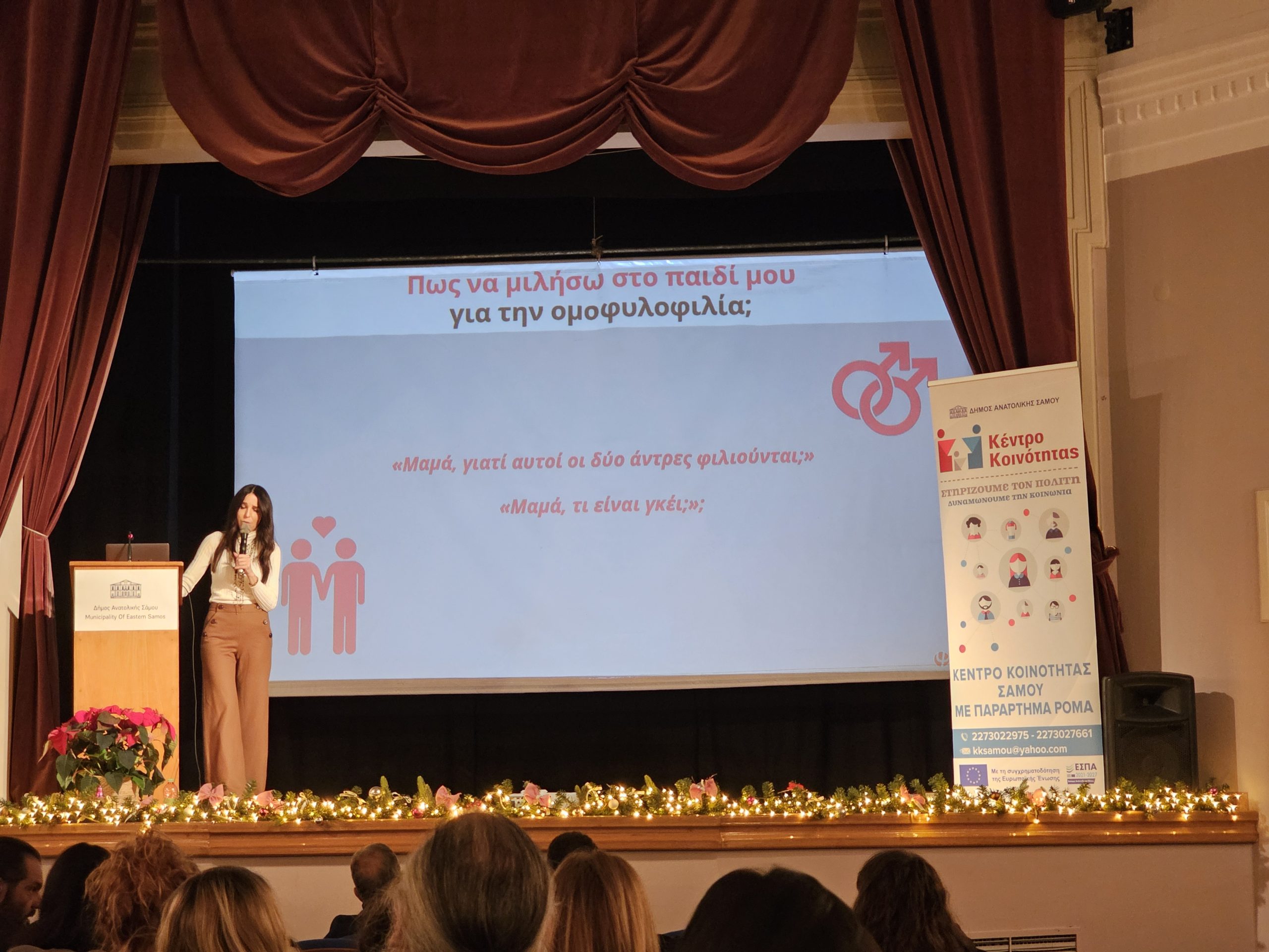 Το Κέντρο Κοινότητας Δήμου Ανατολικής Σάμου με Παράρτημα Ρομά διοργάνωσε το απόγευμα του Σαββάτου 30.11 μία σημαντική ομιλία με θέμα τη «Σεξουαλική Διαπαιδαγώγηση για Γονείς Παιδιών έως 12 Ετών». Η εκδήλωση πραγματοποιήθηκε στον χώρο εκδηλώσεων του Δημαρχιακού Μεγάρου Σάμου, προσελκύοντας ικανοποιητικό αριθμό γονέων που ήθελαν να ενημερωθούν για αυτό το κρίσιμο ζήτημα.