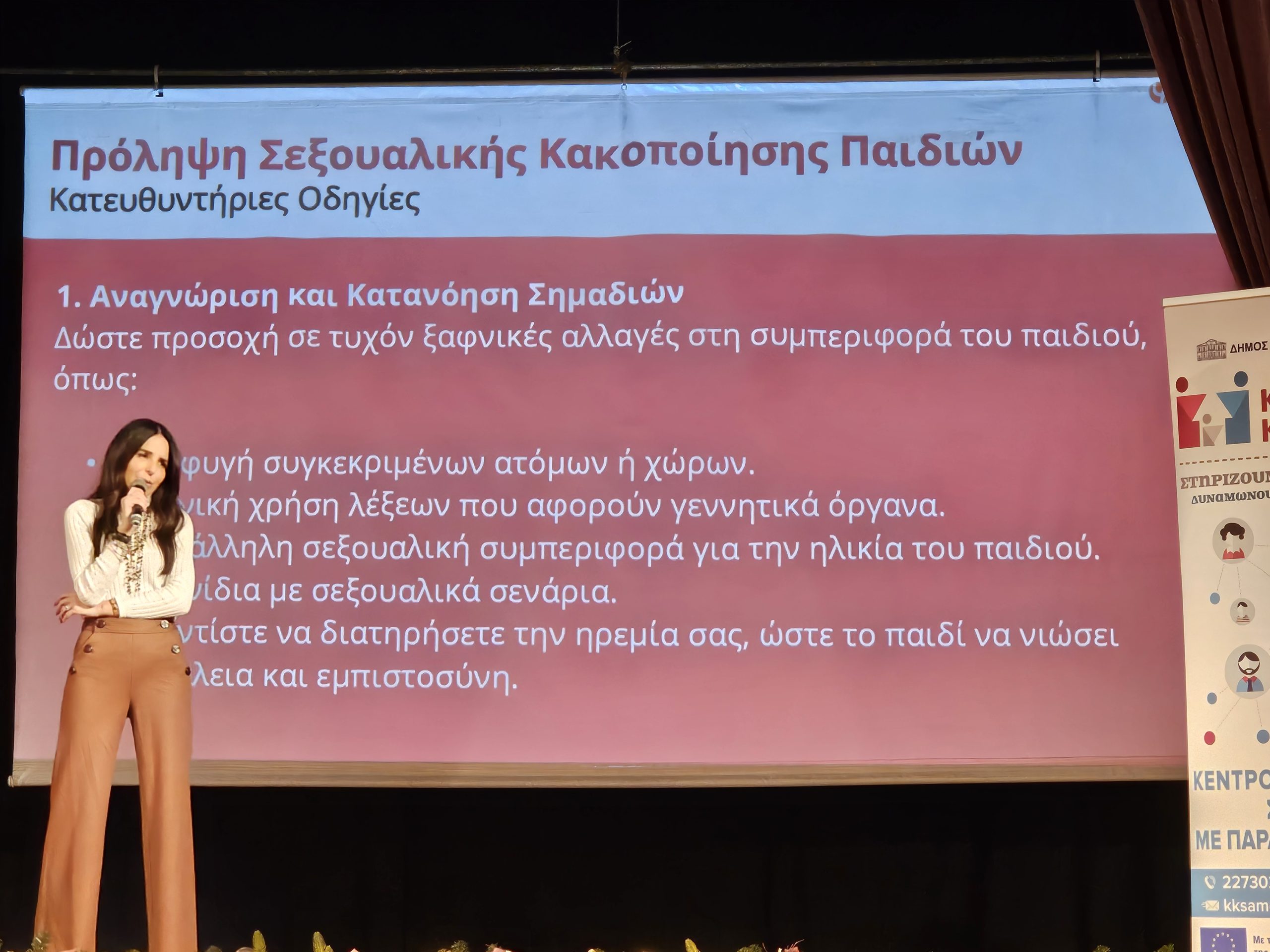 Η κυρία Πασπάλη παρουσίασε πρακτικούς τρόπους για τη συζήτηση θεμάτων όπως τα όρια, τα μέρη του σώματος και η συναίνεση, ενώ παράλληλα παρείχε και ξεκάθαρες κατευθυντήριες οδηγίες σχετικά με την ειλικρίνεια και την ενίσχυση της αυτοεκτίμησης των παιδιών.