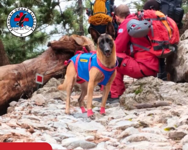 Σκύλος-διασώστης Speedy στο πλευρό των εθελοντών της ΕΟΔ στην αναζήτηση του 21χρονου Γερμανού