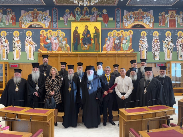 Συνήλθε επί διήμερο, τη Δευτέρα 9 και την Τρίτη 10 Δεκεμβρίου 2024, η Διαρκής Ιερά Σύνοδος της Εκκλησίας της Ελλάδος της 168ης Συνοδικής Περιόδου, υπό την Προεδρία του Μακαριωτάτου Αρχιεπισκόπου Αθηνών και πάσης Ελλάδος κ. Ιερωνύμου. Στο διάλειμμα της Συνεδρίας της Δευτέρας 9ης Δεκεμβρίου, κατόπιν της από 5ης Νοεμβρίου 2024 Συνοδικής Αποφάσεως, ο Μακαριώτατος Αρχιεπίσκοπος Αθηνών και πάσης Ελλάδος κ. Ιερώνυμος απένειμε τον Χρυσό Σταυρό του Παρασήμου του Αποστόλου Παύλου, ο οποίος είναι η ανώτατη τιμητική διάκριση της Εκκλησίας της Ελλάδος, στον Καθηγητή κ. Εμμανουήλ Βαρβούνη, Κοσμήτορα της Σχολής Κλασικών και Ανθρωπιστικών Σπουδών του Δημοκριτείου Πανεπιστημίου Θράκης, για τη σύνολη προσφορά του στην Ειδική Συνοδική Επιτροπή Πολιτιστικής Ταυτότητος, στα διοργανωθέντα από αυτήν Επιστημονικά Συνέδρια και τις άλλες πολιτιστικές εκδηλώσεις, και γενικότερα στις κατά τόπους Ιερές Μητροπόλεις της Εκκλησίας της Ελλάδος.