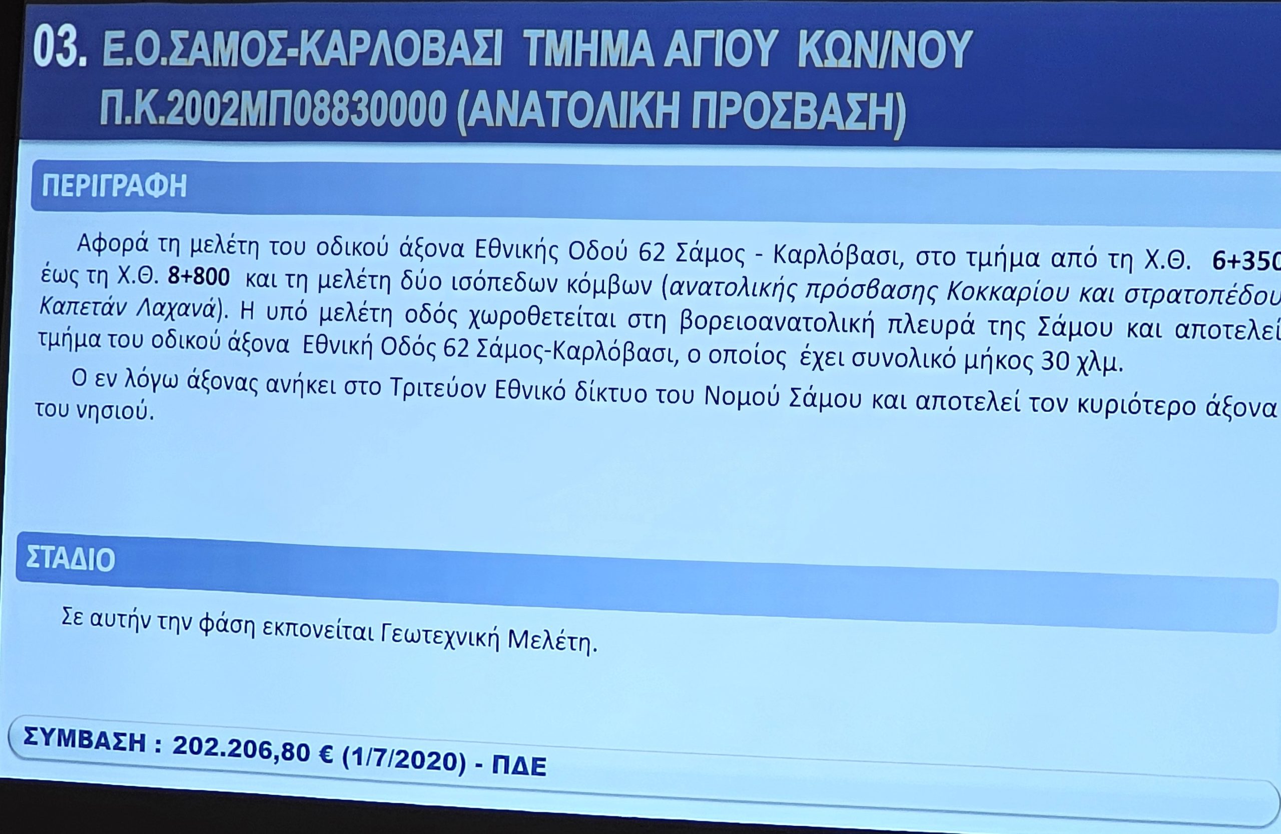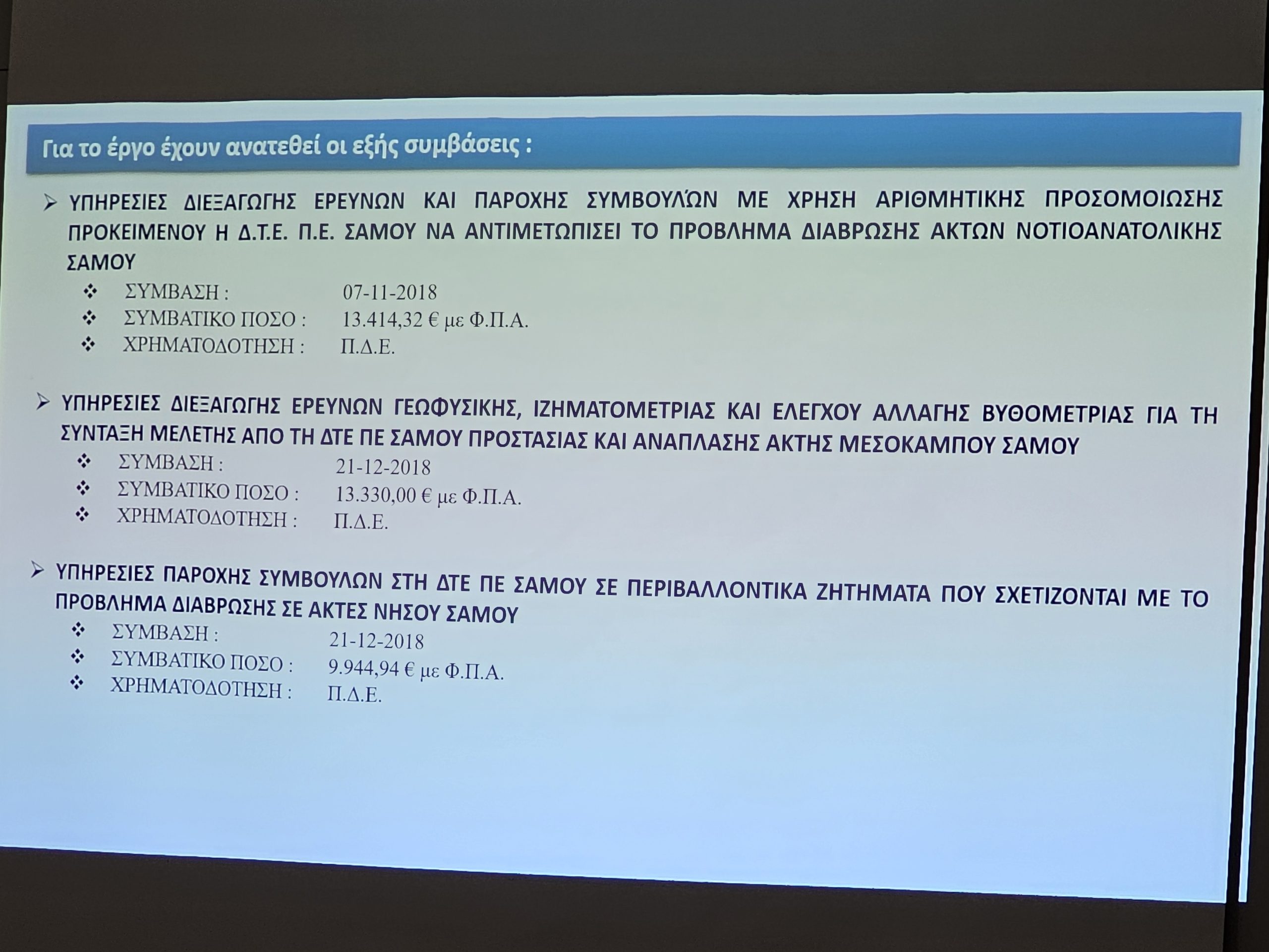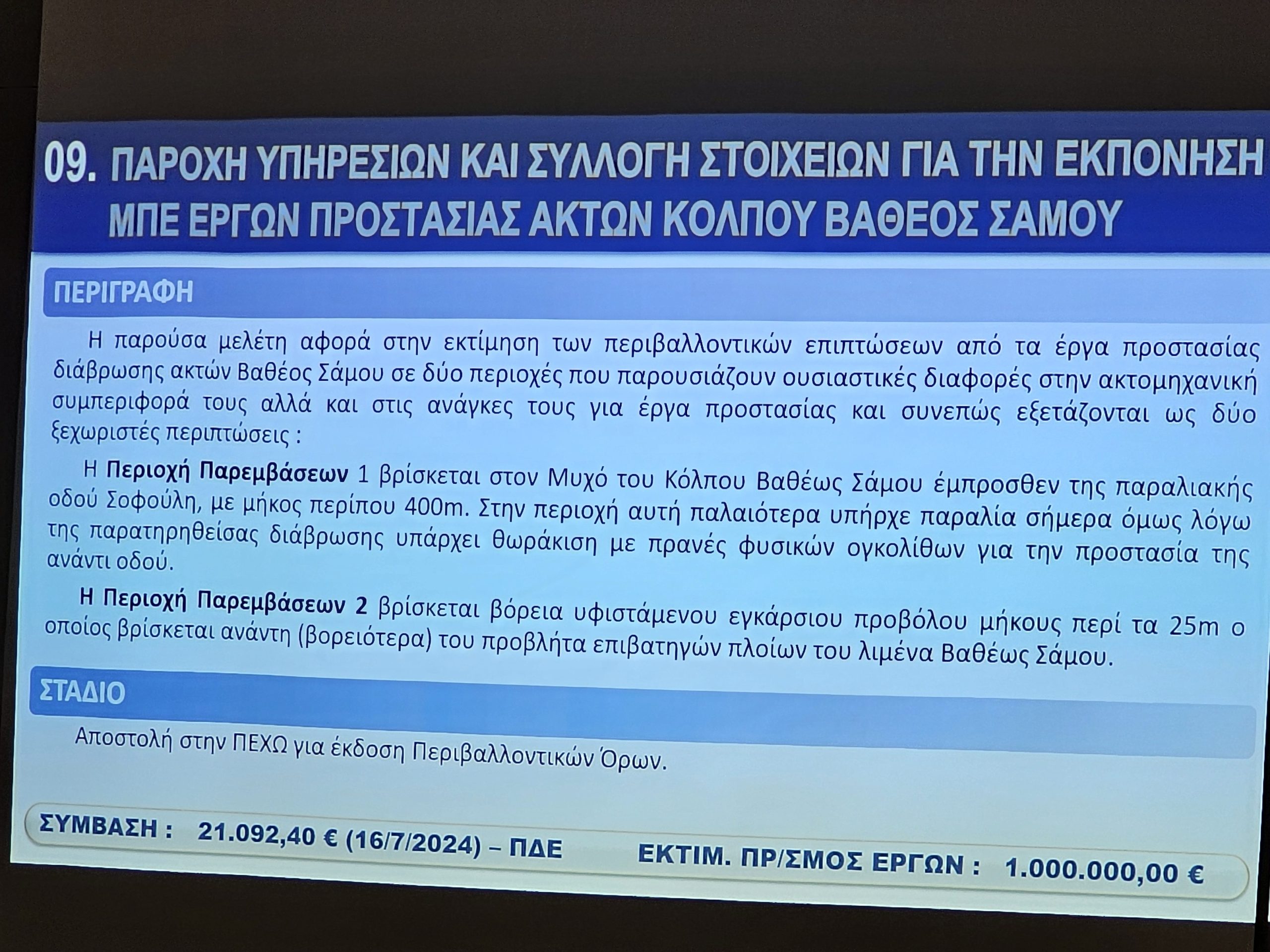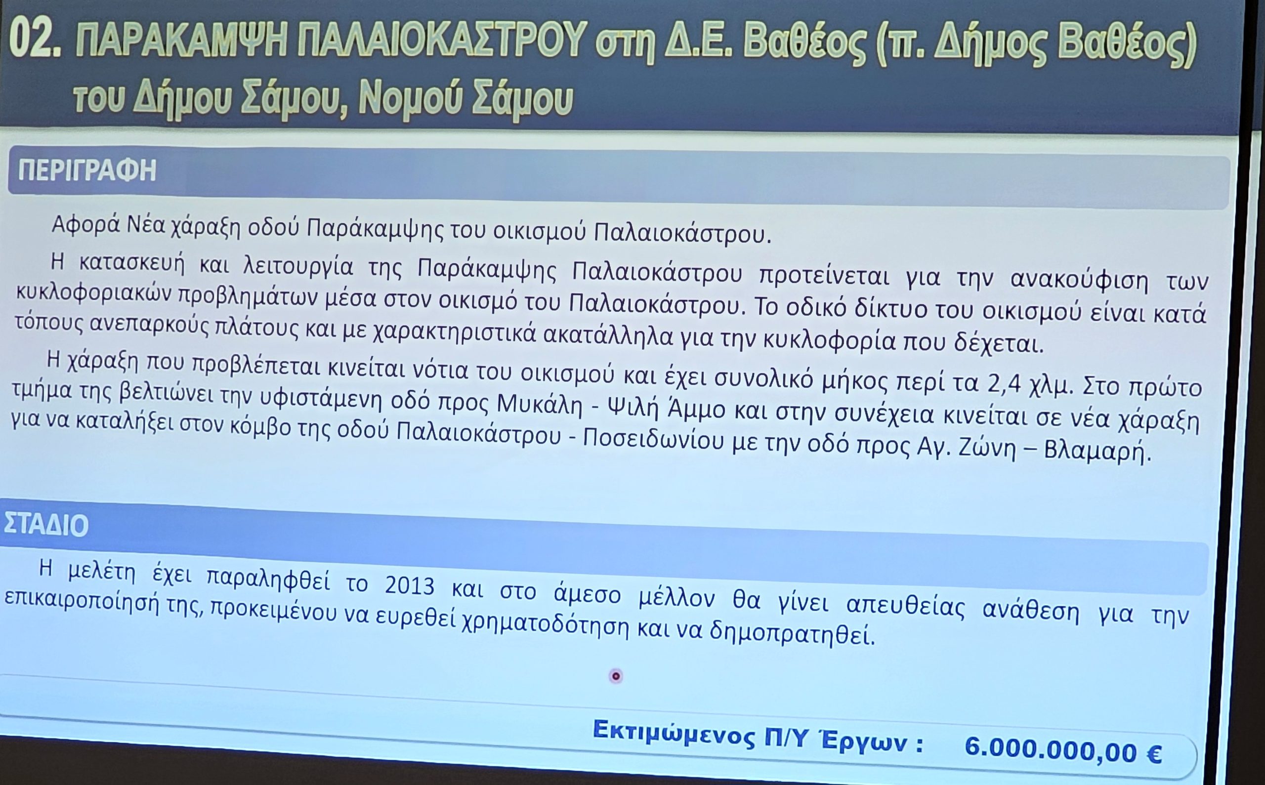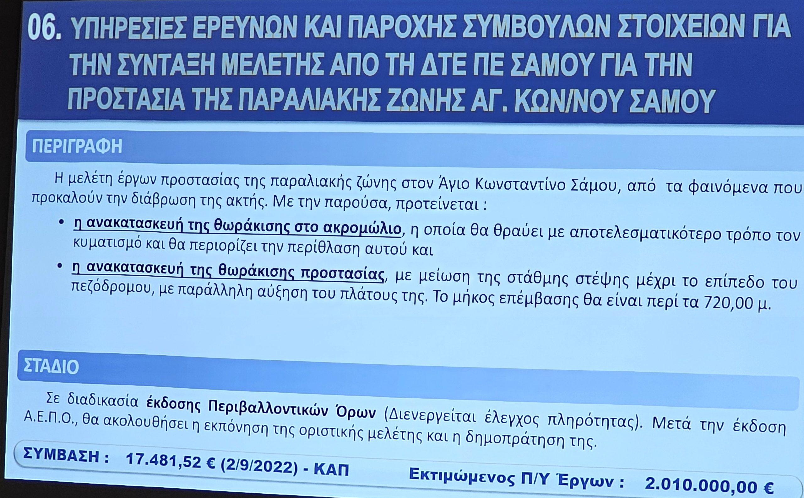 Ο Προϊστάμενος των Τεχνικών Υπηρεσιών Νίκος Ζαφείρης, παρουσίασε τα έργα με έμφαση στη συμβολή τους στην αναπτυξιακή προοπτική της Νήσου Σάμου.
