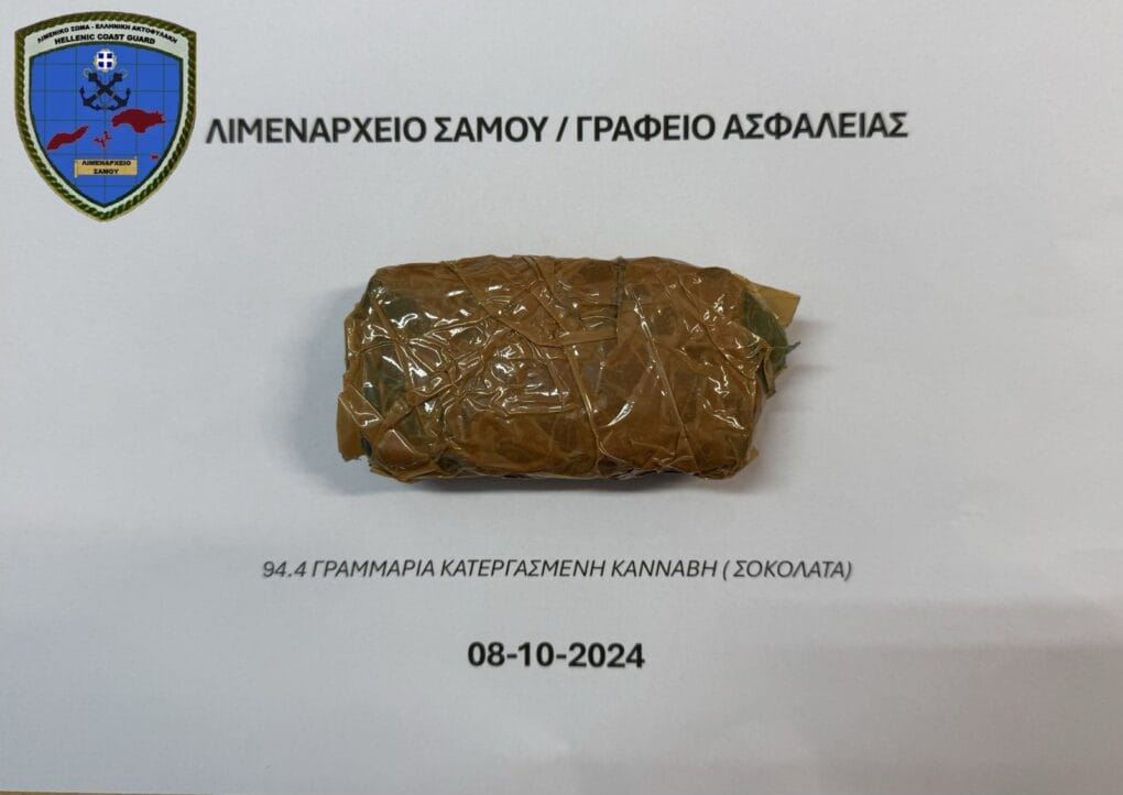 Ειδικότερα, κατά τον έλεγχο που διενεργήθηκε στο λιμάνι του Καρλοβασίου της Σάμου, κατά τον κατάπλου επιβατικού-οχηματαγωγού πλοίου προερχόμενου από τον Πειραιά, εντοπίστηκε ο 26χρονος να κατέχει εντός της χειραποσκευής του μία αυτοσχέδια πλαστική συσκευασία με πιθανόν κατεργασμένη κάνναβη, μεικτού βάρους 94,4 γραμμαρίων.