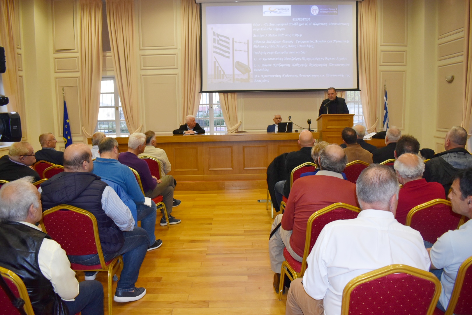 Η Περιφέρεια Βορείου Αιγαίου και το Ινστιτούτο Έρευνας και Μελέτης «Θουκυδίδης», διοργάνωσαν χτες  στην αίθουσα διαλέξεων της Γενικής Γραμματείας Αιγαίου και Νησιωτικής Πολιτικής, εσπερίδα με θέμα: «Το Δημογραφικό Πρόβλημα και η Παράτυπη Μετανάστευση στην Ελλάδα σήμερα».