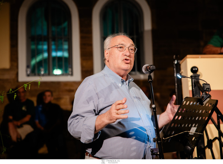 Στη συνέχεια , μίλησε ο ομότιμος καθηγητής Αρχιτεκτονικής ΕΜΠ Γ. Μωραίτης Ακολούθησαν ομιλίες του ιστορικού και φιλόλογου Μιχάλη Μόσχου ,του πρ. βουλευτή Χίου και ιατρού Ανδρέα Μιχαηλίδη, του συγγραφέα Γιάννη Μακριδάκη, και ένας εξαιρετικά ενδιαφέρων διάλογος ανάμεσα στην γνωστή για τα φιλελληνικά της αισθήματα συγγραφέα και μέλος της Επιτροπής Συνένωσης για τα Γλυπτά του Παρθενώνα Βικτόρια Χίσλοπ με τον αρχαιολόγο Θεόδωρο Παπακώστα που καθήλωσε το κοινό .Η συζήτηση στη συνέχεια επικεντρώθηκε στην ιστορία του Λωβοκομείου και στη σύγκριση του με τη Σπιναλόγκα στην Κρήτη , δίνοντας έμφαση στο πόσο πιο ελεύθερη ανθρώπινη και ανοιχτή στην κοινωνία ήταν η διαβίωση των ασθενών με τη νόσο του Χάνσεν στην Χίο.