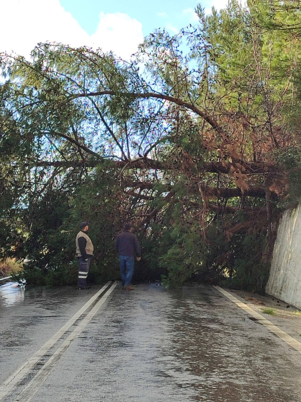 Τρία μεγάλα πεύκα έπεσαν και έκλεισαν το δρόμο στην περιοχή Γλυκόριζα