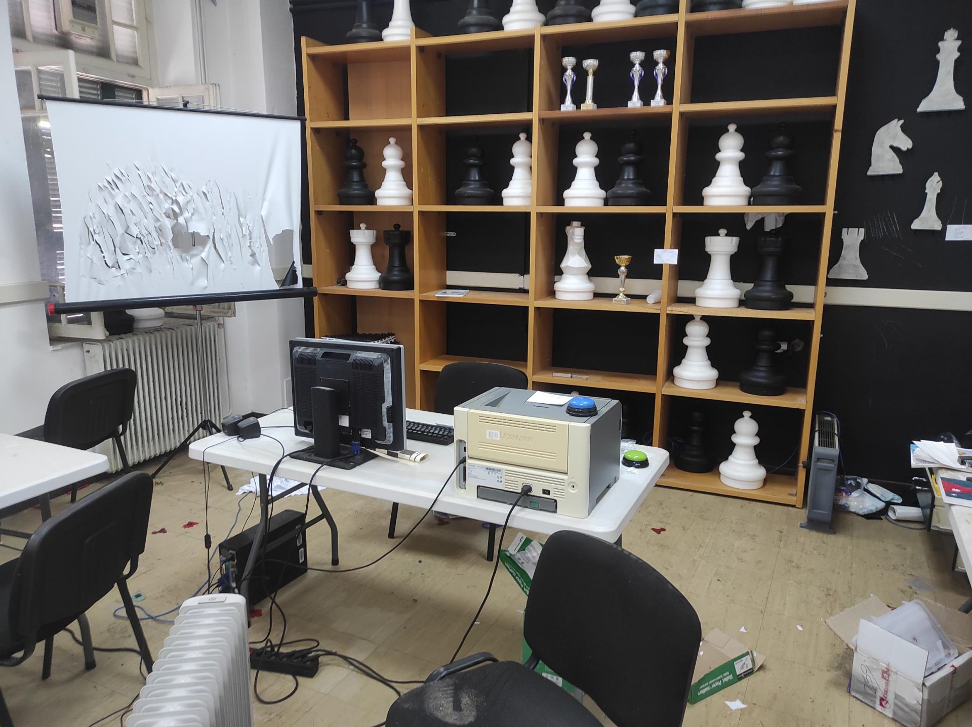 Με μεγάλη θλίψη και αγανάκτηση αντικρίσαμε σήμερα μια παράλογη εικόνα καθώς η αίθουσα που χρησιμοποιεί ο Όμιλός μας στο Βαθύ έγινε στόχος βάνδαλων που προξένησαν σημαντικές φθορές τόσο στο κτήριο όσο και στο σκακιστικό υλικό του Ομίλου μας.