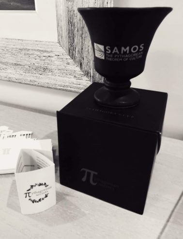 Την «κούπα του Πυθαγόρα» ή αλλιώς «δίκαιη κούπα» που κατασκεύασε ο Σάμιος φιλόσοφος, μαθηματικός, γεωμέτρης και θεωρητικός της μουσικής που είχε ως στόχο την υπόδειξη και την τήρηση του μέτρου, «μέτρον άριστον» έλαβε ως δώρο η πρόεδρος του ΕΟΤ, Άντζελα Γκερέκου, απο την Σάμο.